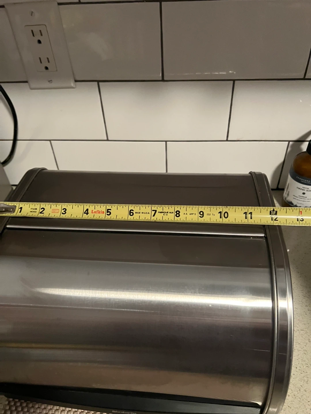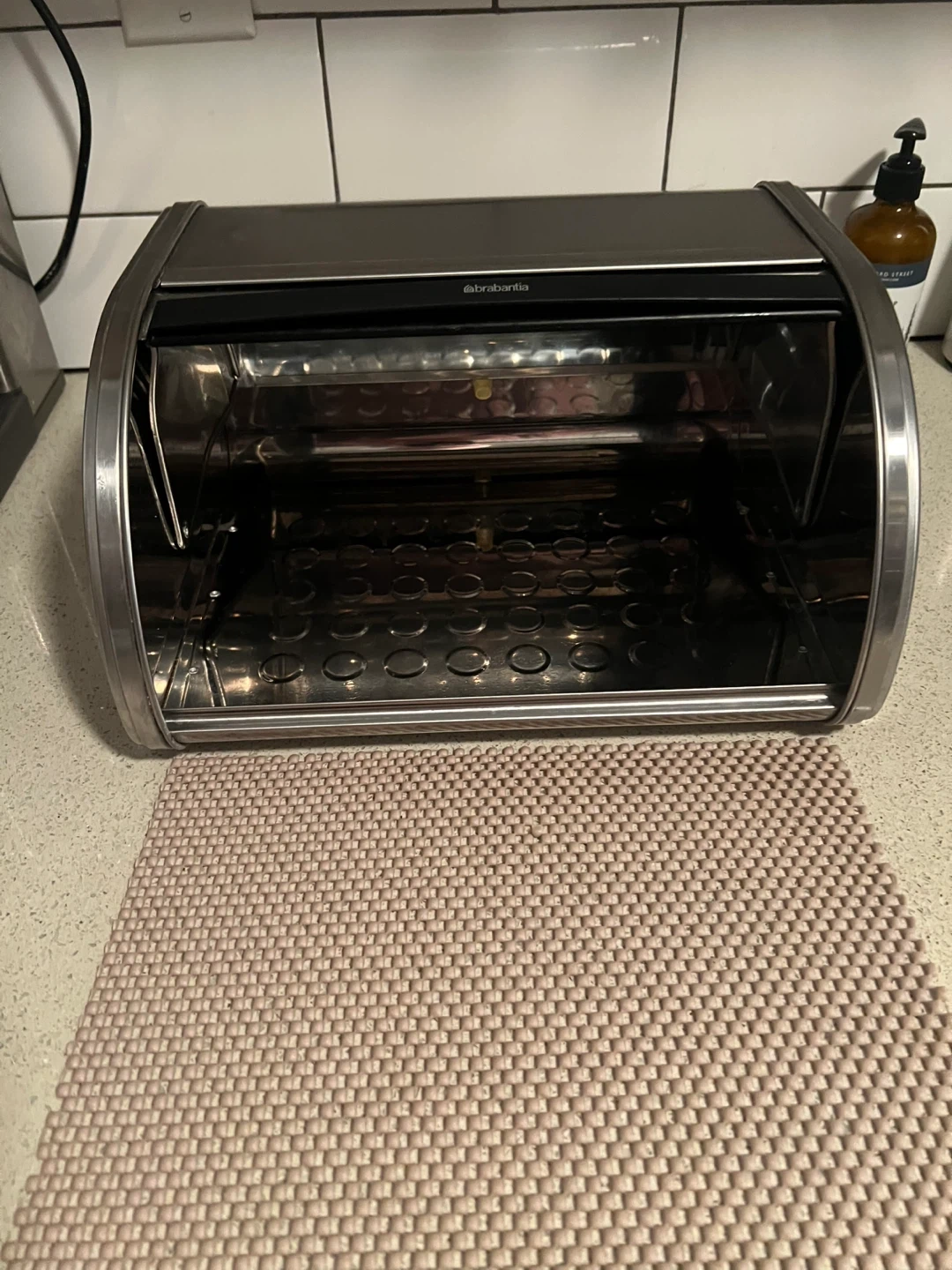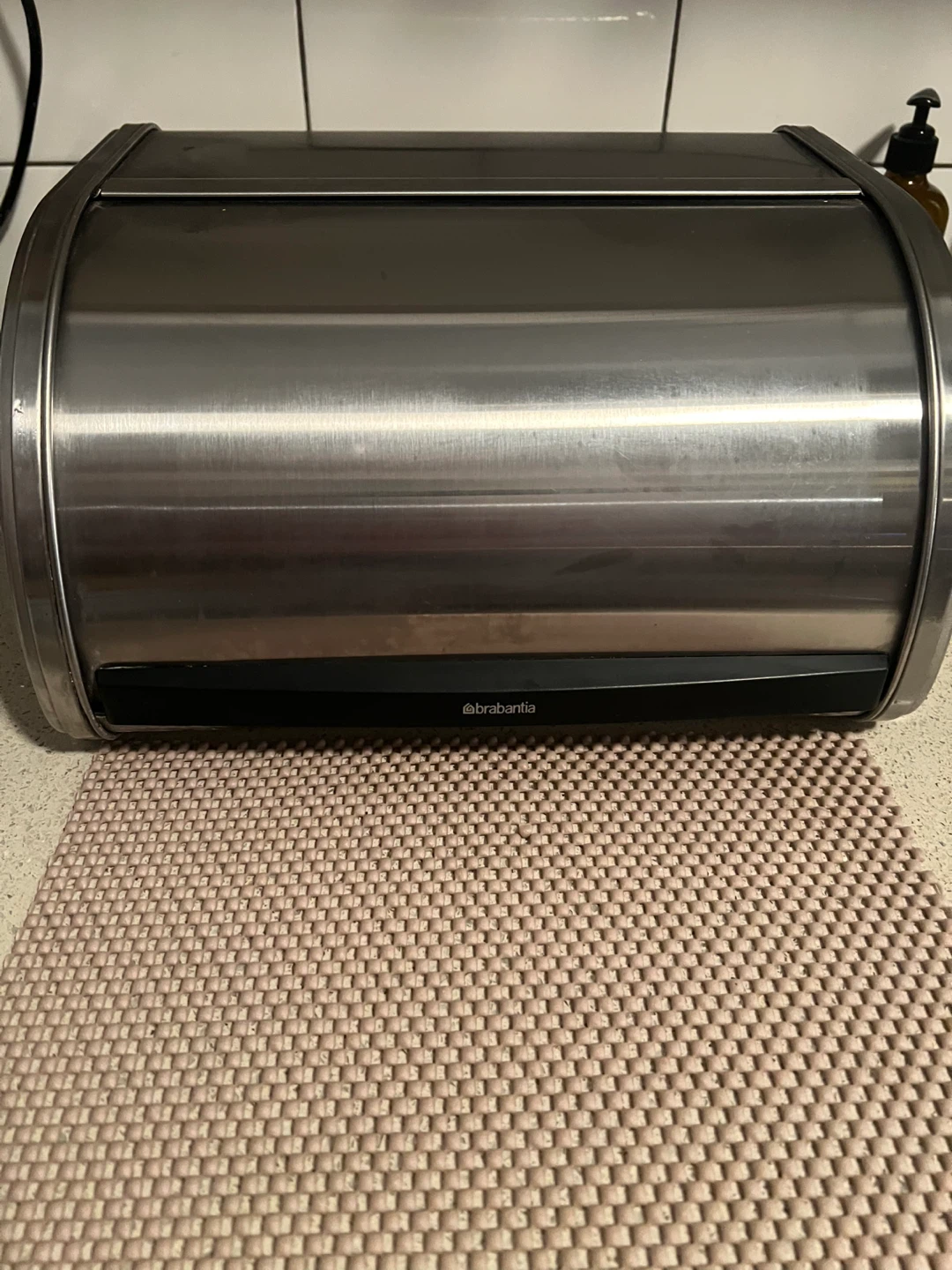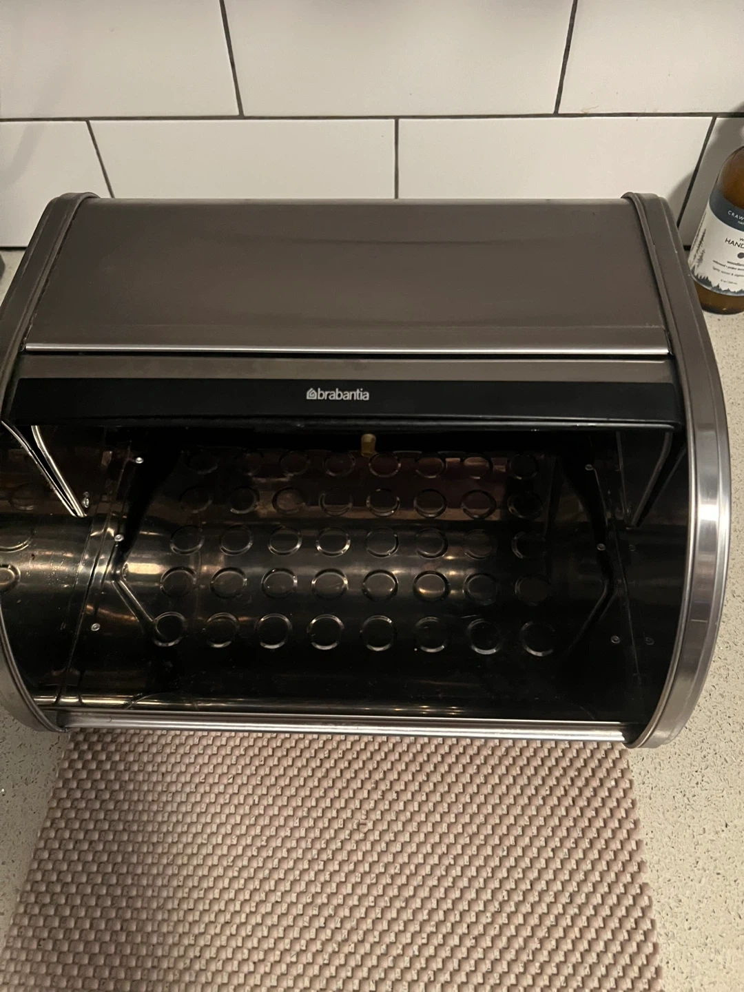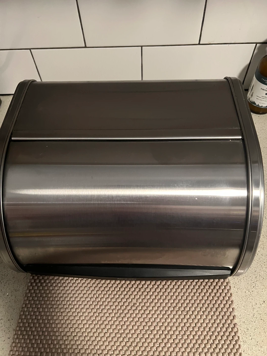 Selling a Brabantia bread bin with a roll top in matte steel.