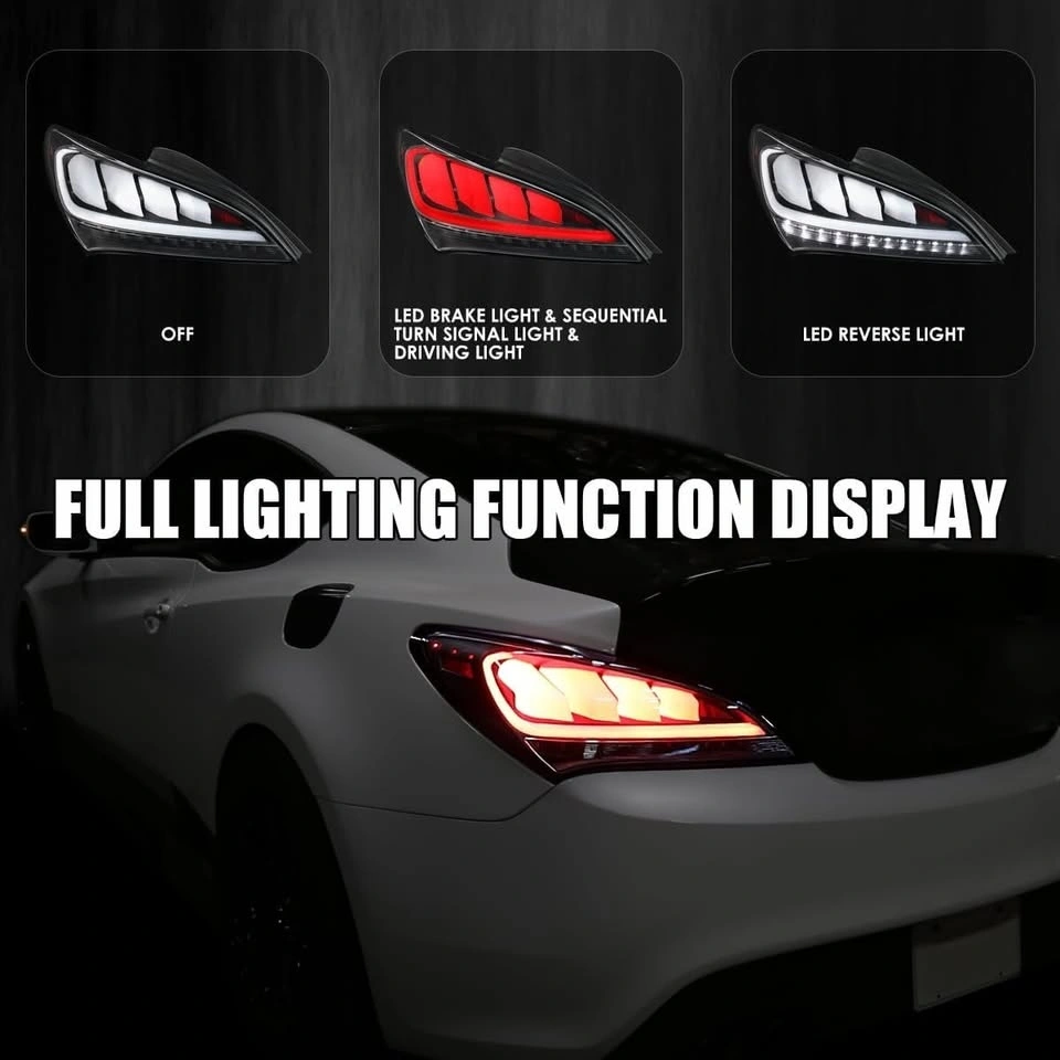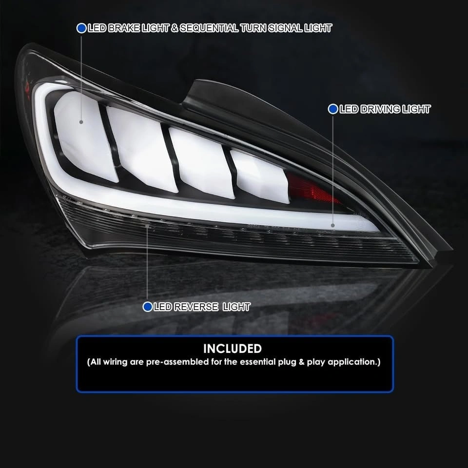 Upgrade the look and safety of your Genesis Coupe with this brand new LED tail light set. Designed as a direct bolt-on replacement, these tail lights install easily with no wiring or modifications required.