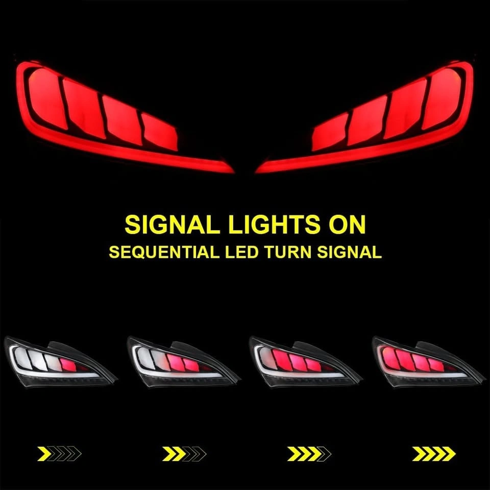 SPEC-D Black LED Bar Sequential Tail Lights 2010-2016 Hyundai Genesis Coupe Left & Right Pair