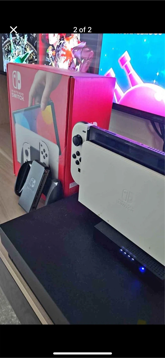 Selling a Nintendo Switch OLED model in white. It's in great condition and comes with the box and all included just the ac charger is missing Perfect for gaming on the go or at home!