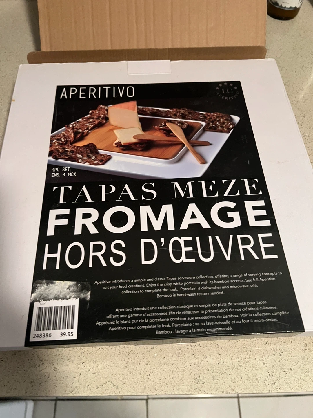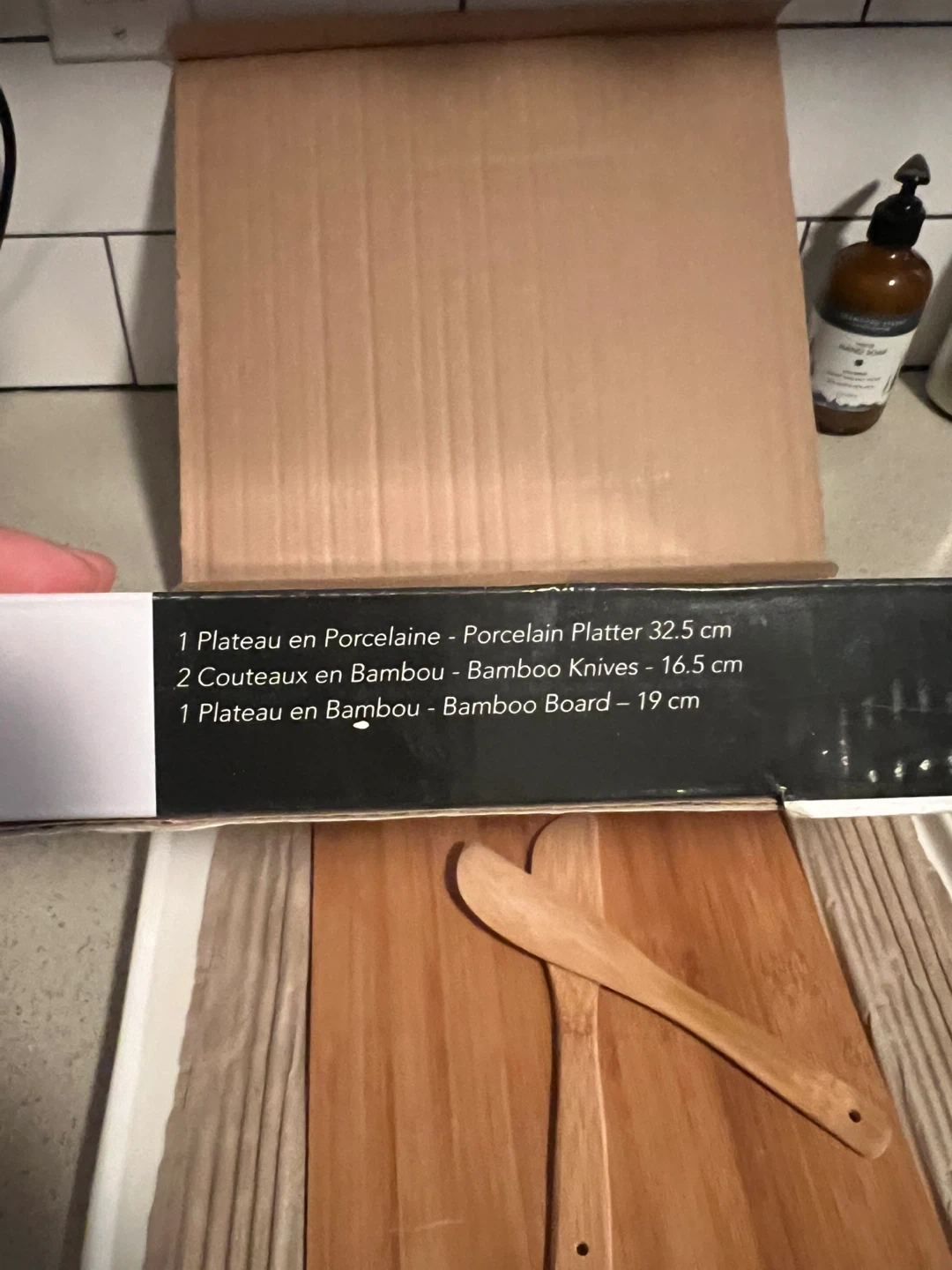 Selling a brand new Aperitivo tapas set! This set includes a porcelain platter, two bamboo knives, and a bamboo board. It's a simple and classic tapas serveware collection, perfect for serving concepts to suit your food creations. The porcelain is dishwasher and microwave safe, and the bamboo is hand-wash recommended. Originally bought for $39.95, this 4-piece set is ready for your next gathering!