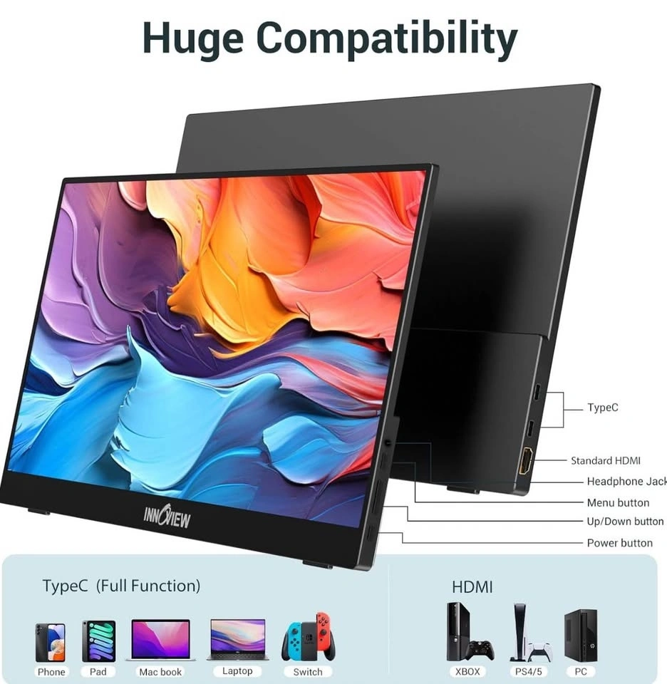 InnoView 15.6” Portable Monitor – FHD 1080P – USB-C & HDMI