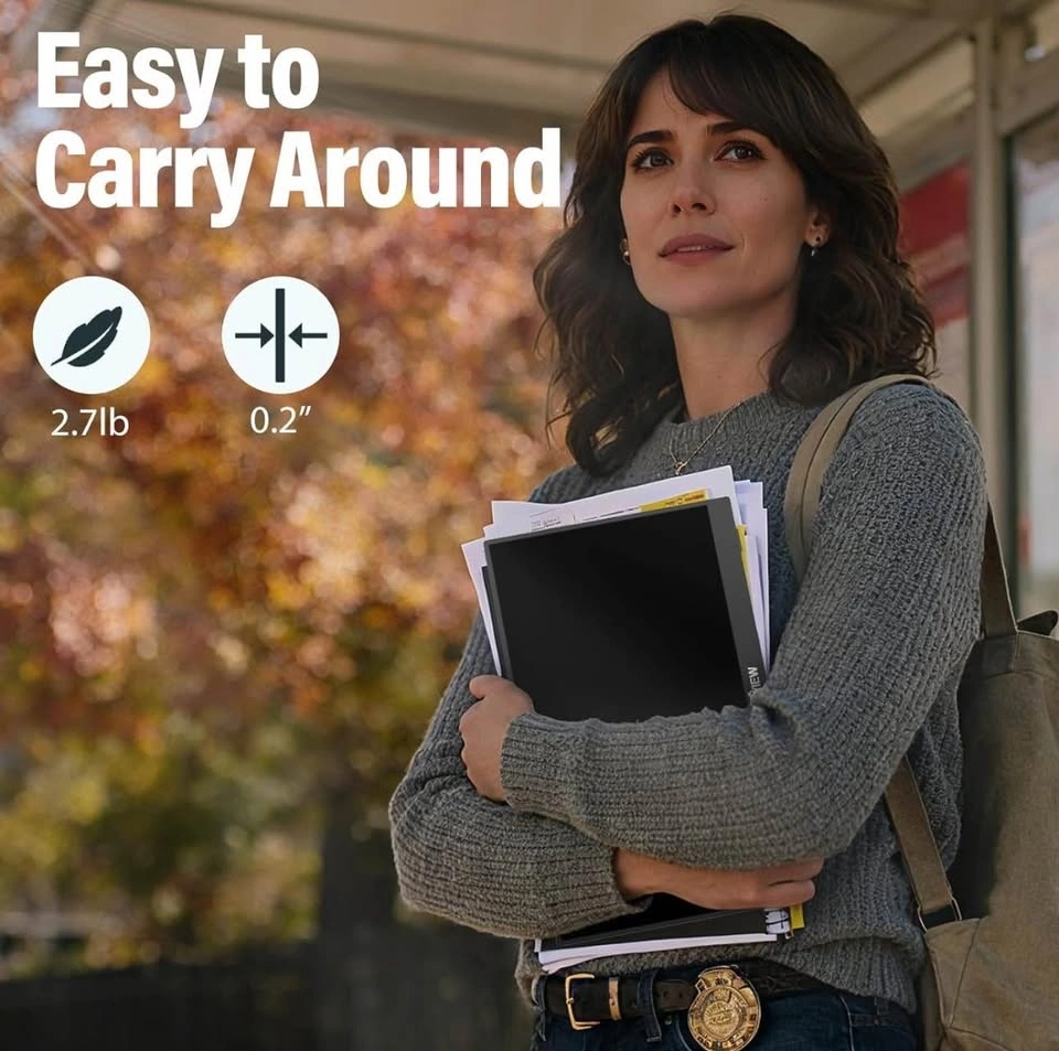 15.6” Full HD portable monitor with USB-C and HDMI. Works with laptops, phones, PS5, Xbox, Switch, and more. Includes smart cover.
