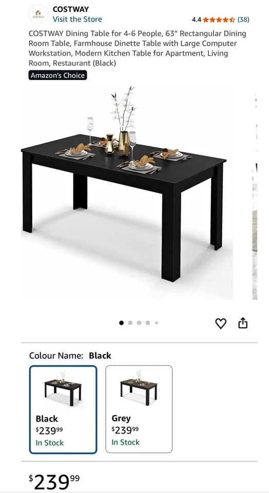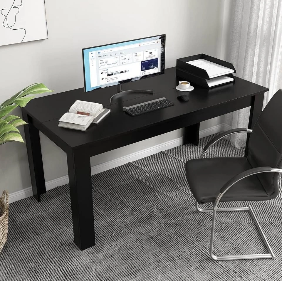 COSTWAY 63-inch rectangular dining table for 4–6 people. Modern farmhouse design. Also works as a large desk or workstation. Black.