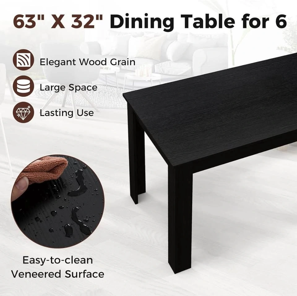 COSTWAY 63” Dining Table – Seats 4–6 – Black – Brand New