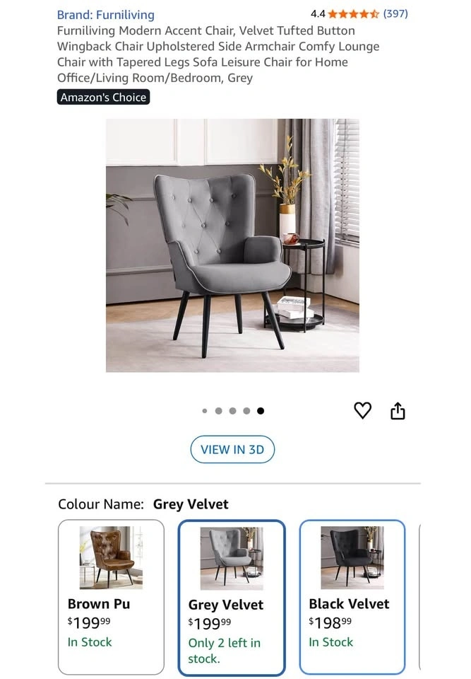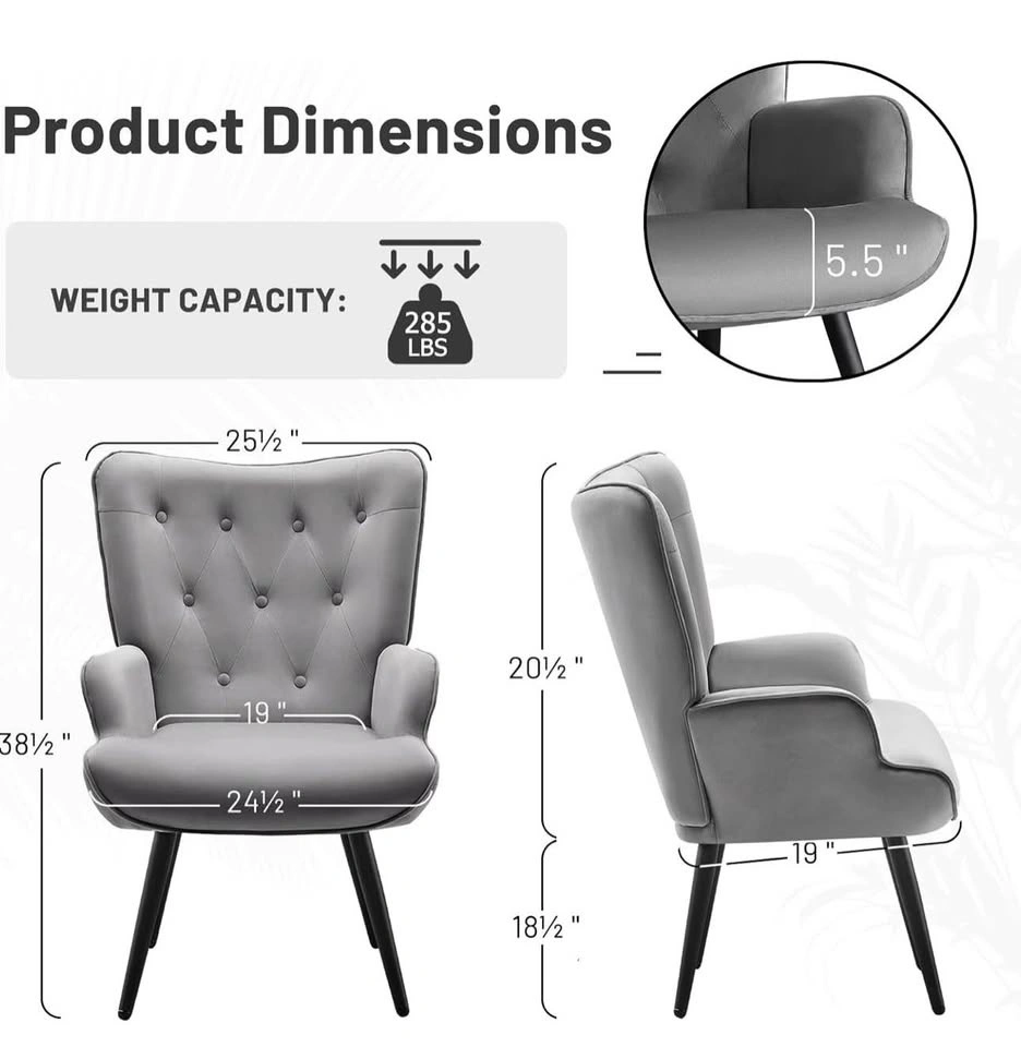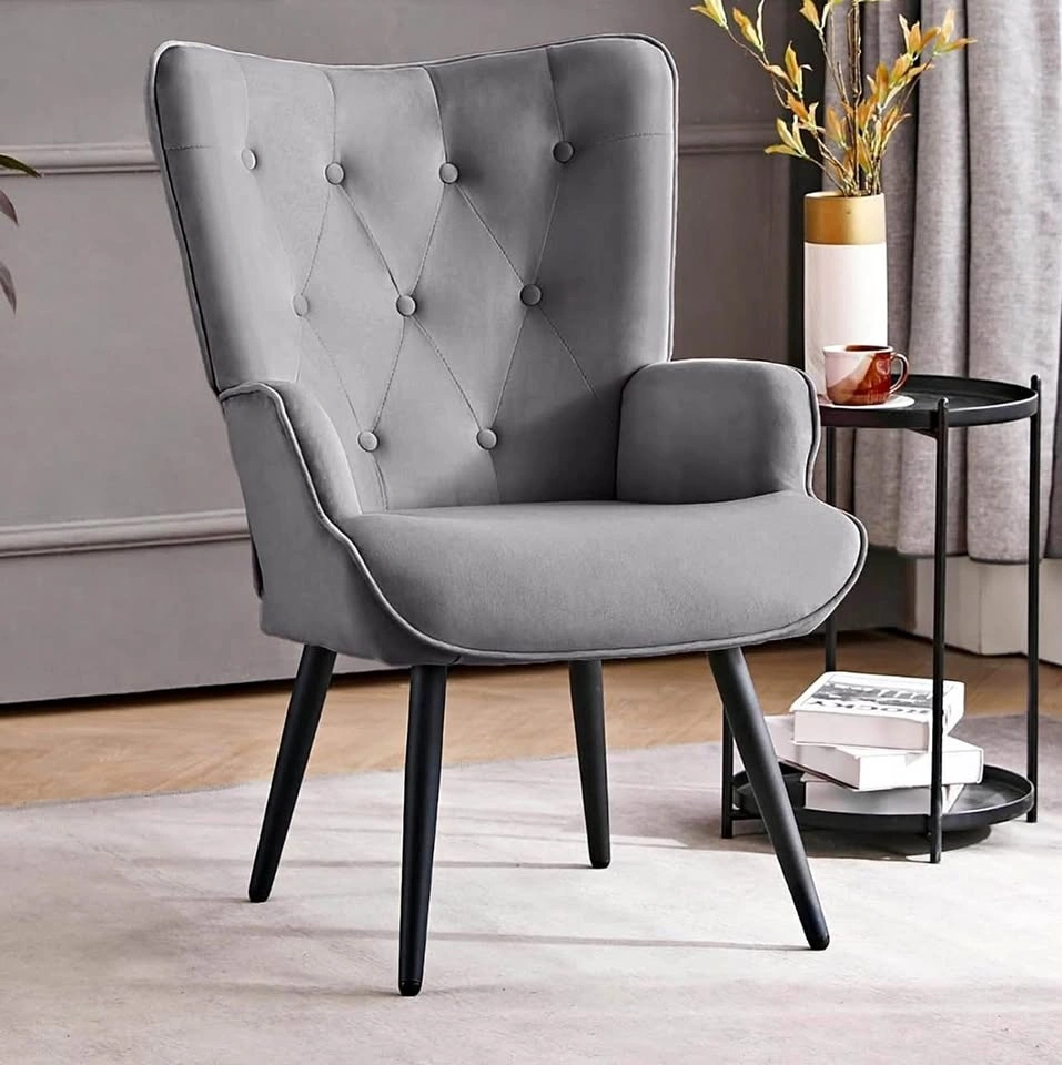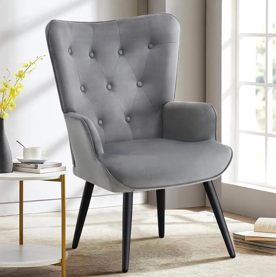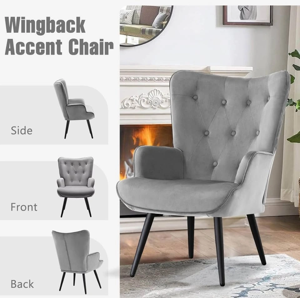 Furniliving Velvet Accent Chair – Wingback Tufted – Grey – Brand