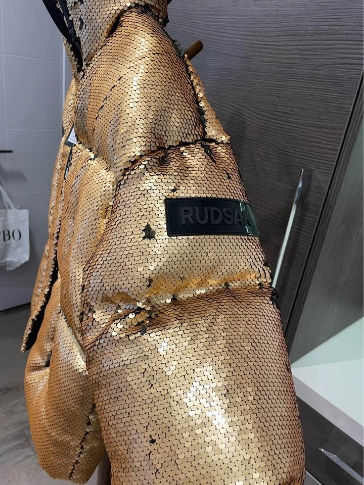 Rudsak puffer jacket, in gold sequin. Size S with an oversized fit.