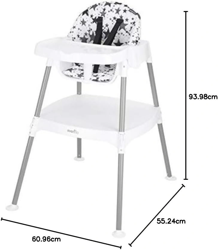 4 Stages of use as your child grows - (1) Infant High Chair, (2) Baby Dining Chairs & Tray, (3) Toddler Stand Alone Chair and (4) Big Kid Table & Chai
