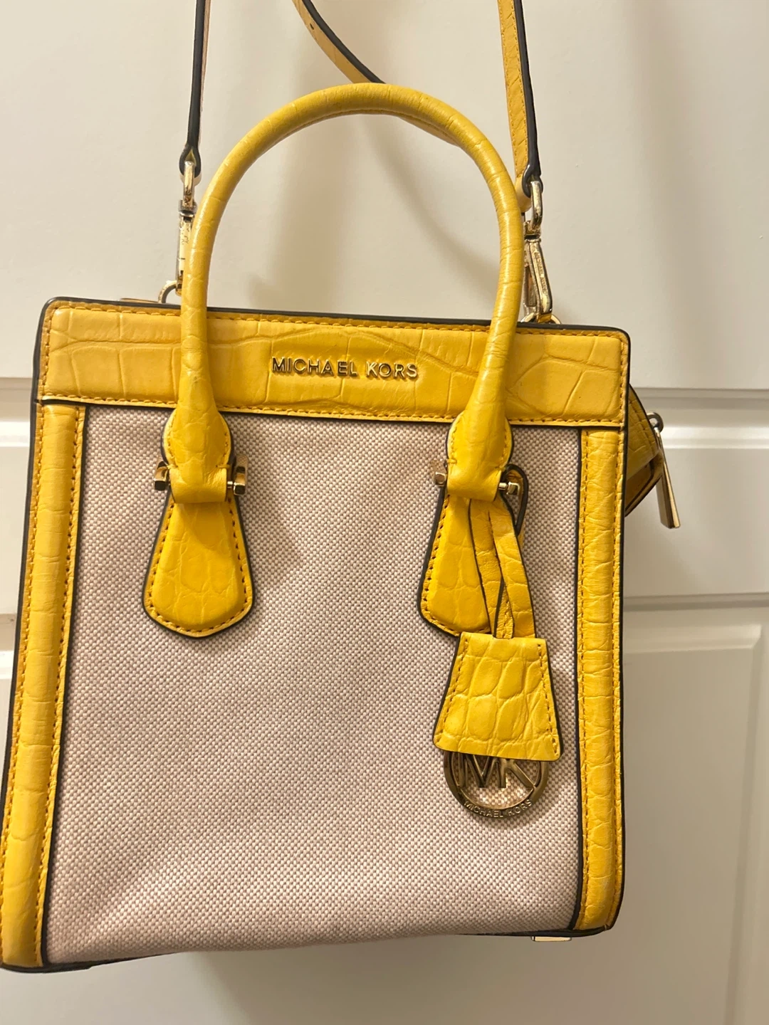 Selling a Michael Kors satchel in yellow! It's in great condition and ready for a new owner. It's a stylish and practical bag for everyday use.