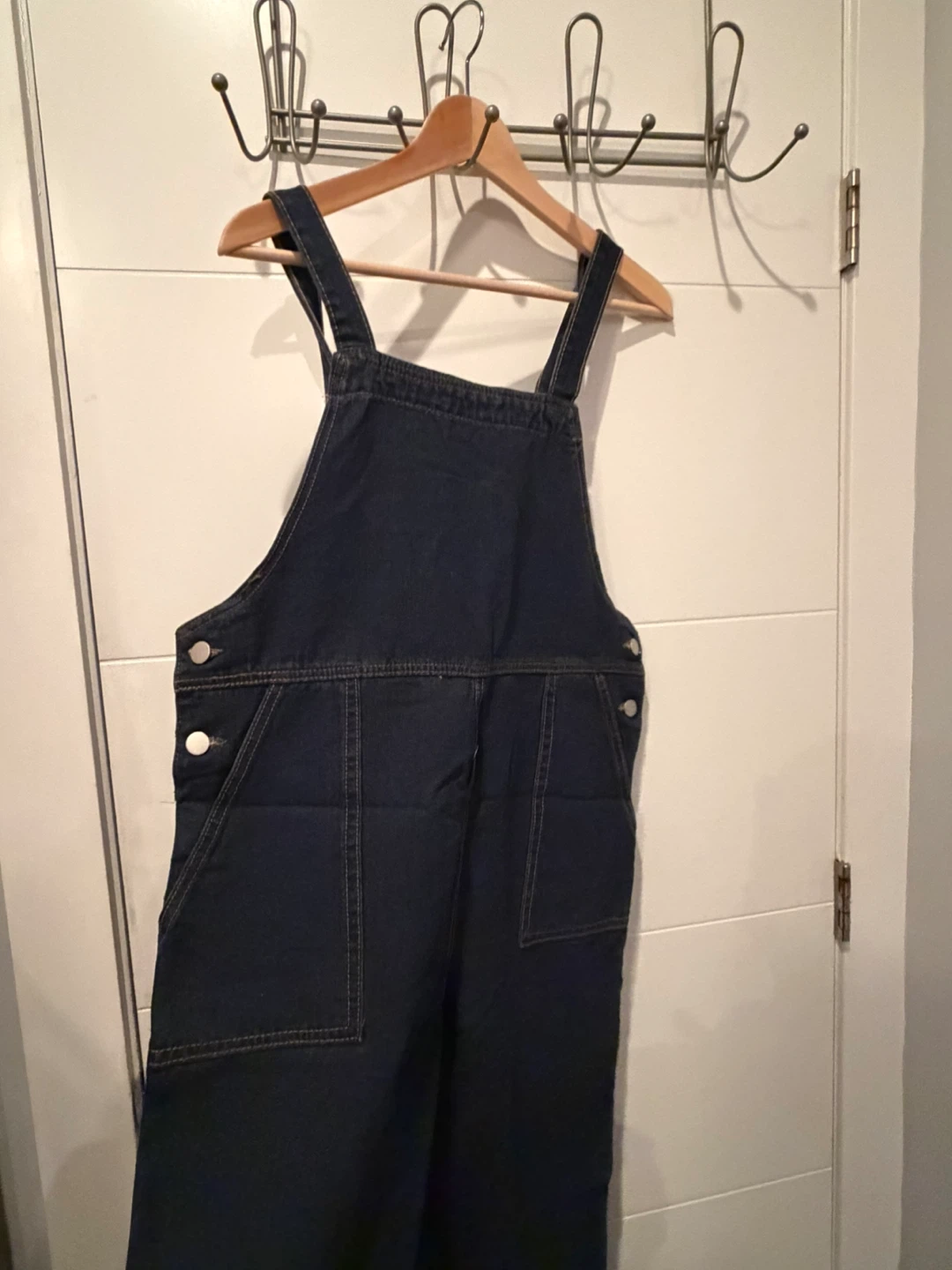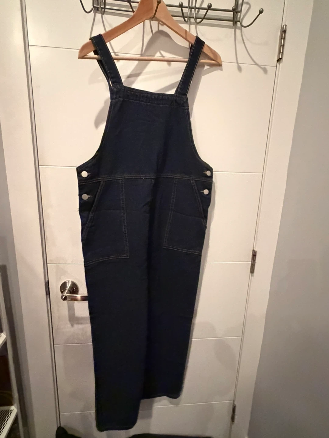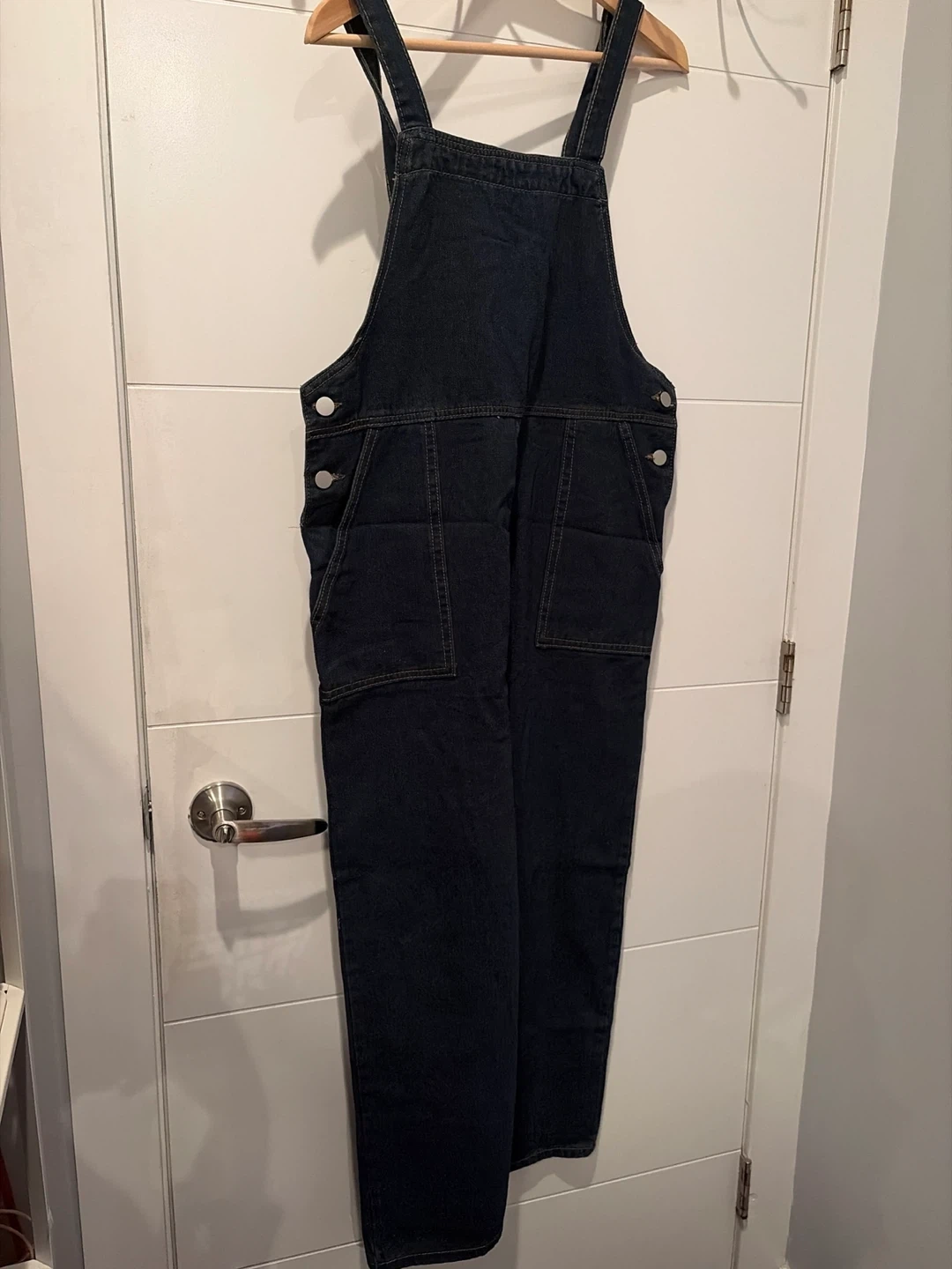 Dark wash denim overalls. They're in great condition and ready for a new home! Perfect for a casual and comfortable look.