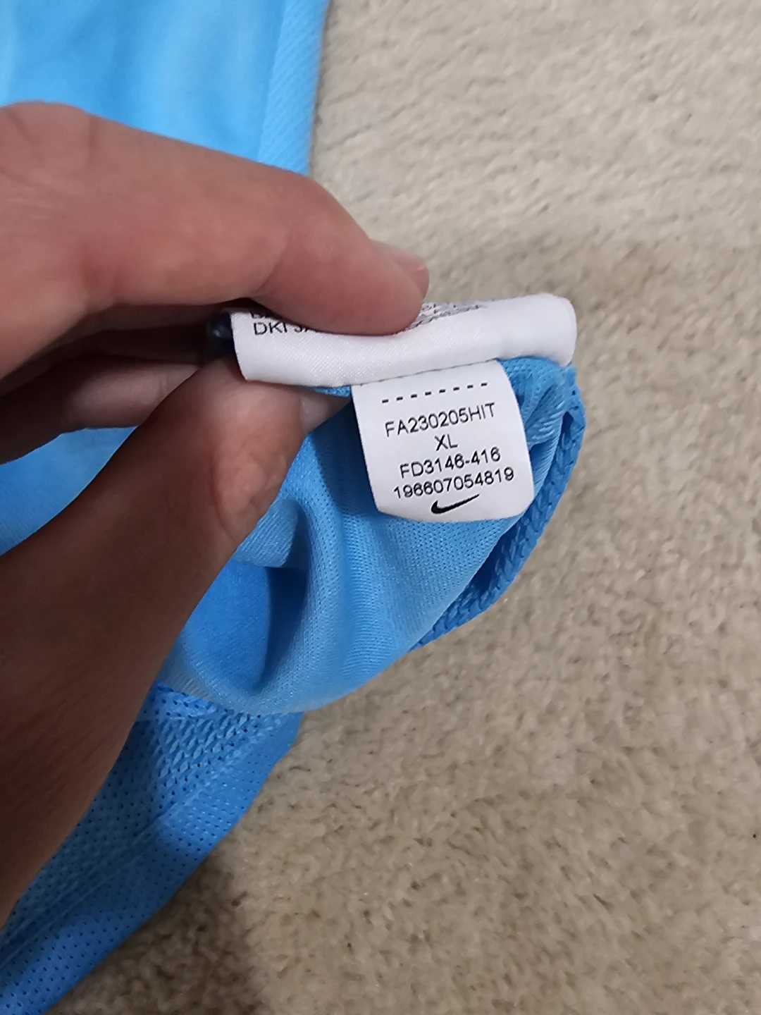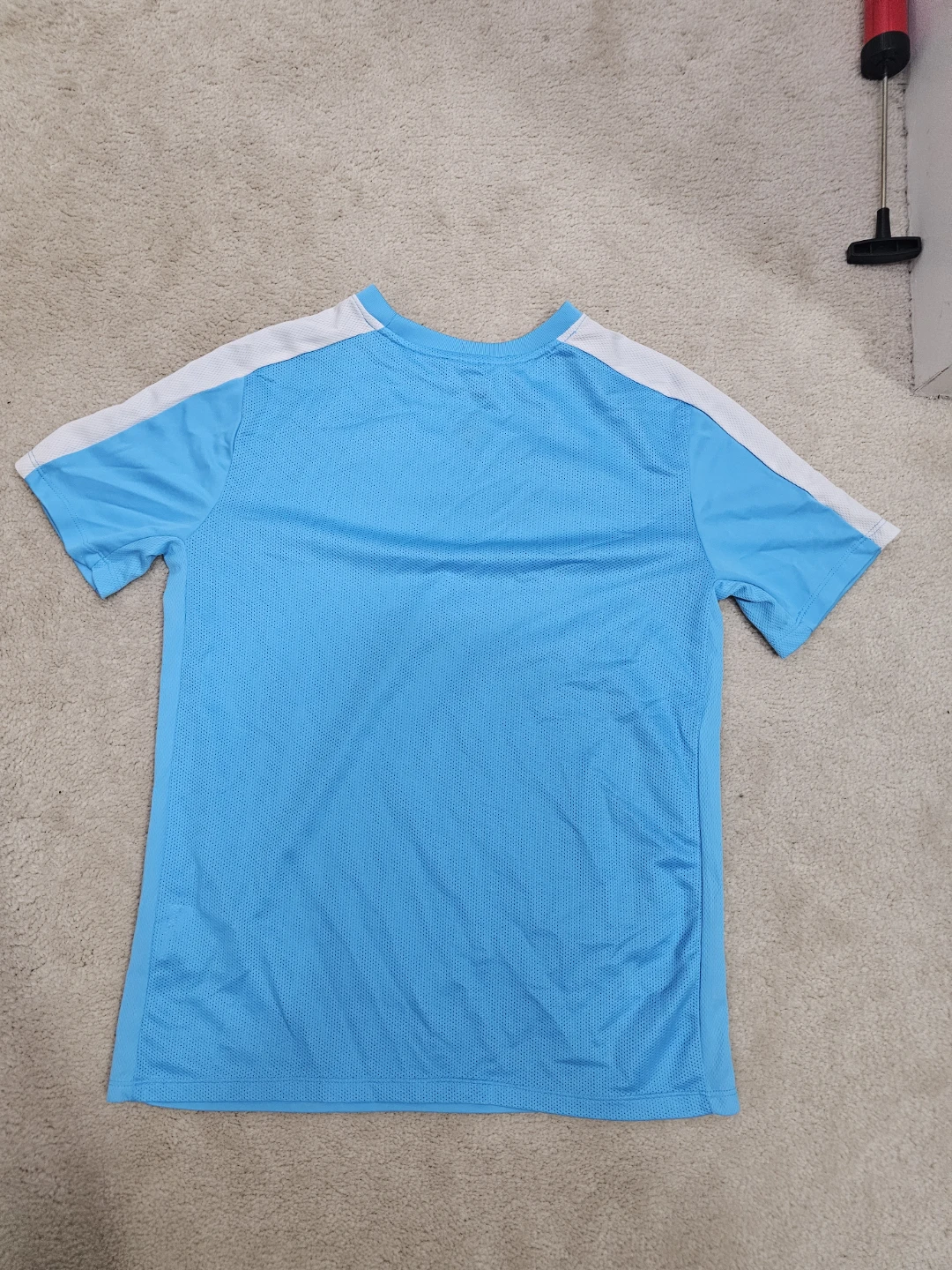 Selling a Nike Dri-FIT T-shirt in size youth XL. It's a light blue colour with white accents on the sleeves. Perfect for sports or casual wear!