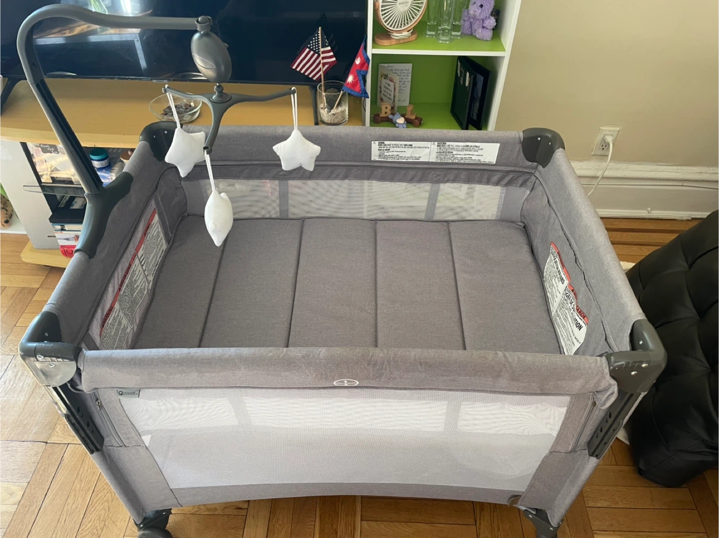 I'm selling a qutanix 2-in-1 Baby Playard, Pack and Play Bassinet, Easy Folding Portable Crib with Music Mobile for Newborn to Toddlers (Grey)