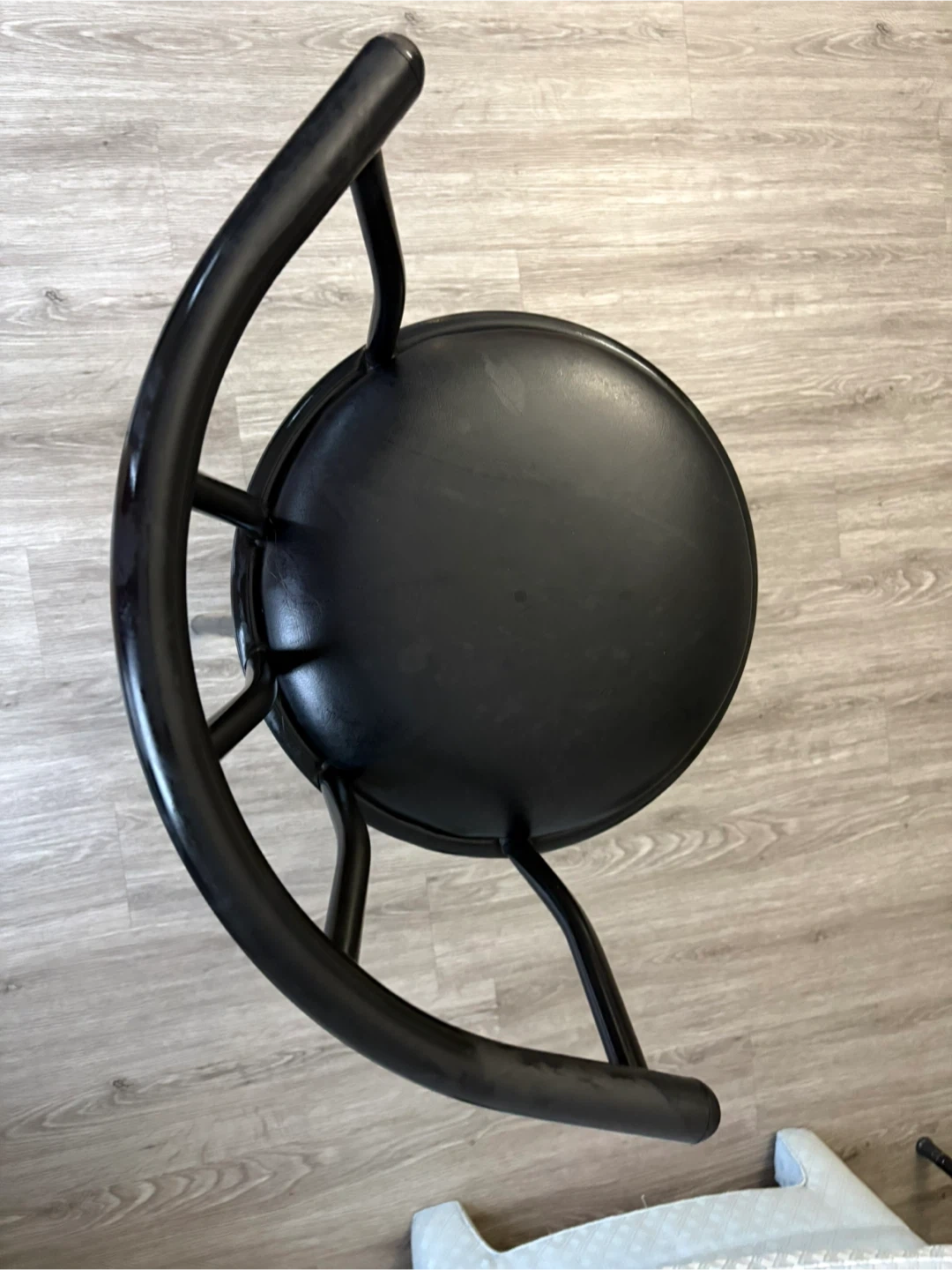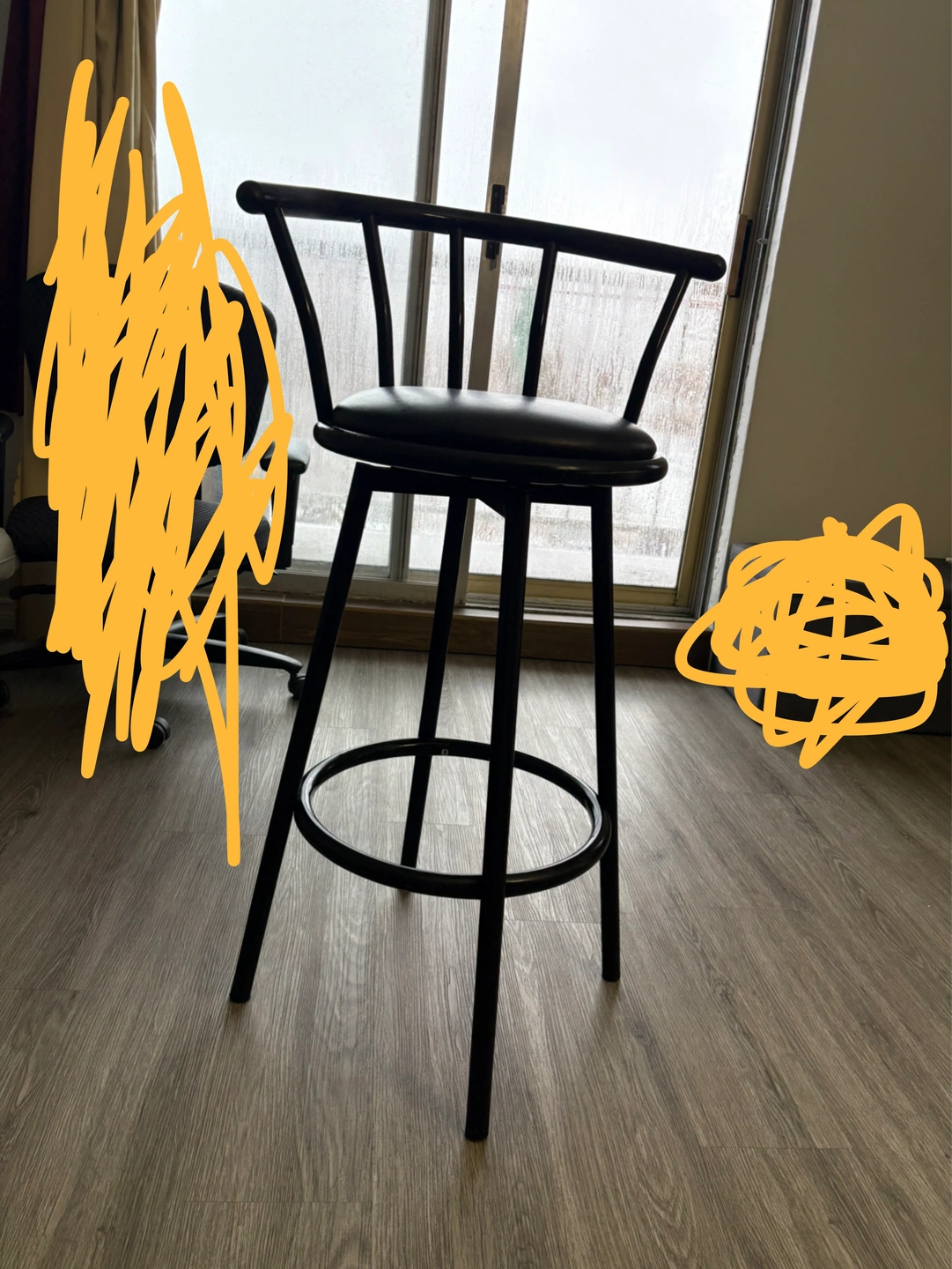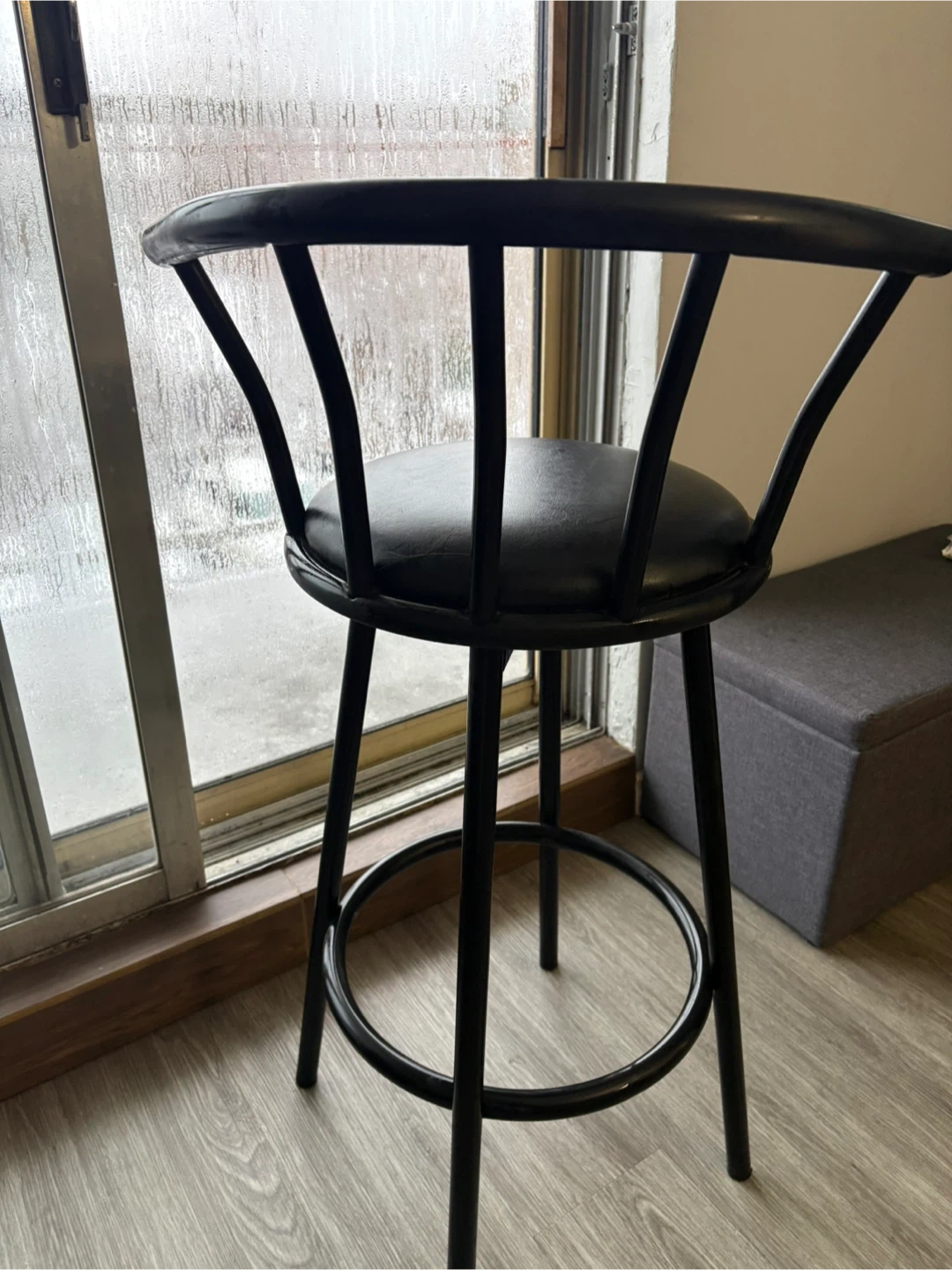 Selling a black bar stool in great condition. It features a sleek design and is perfect for adding a modern touch to your kitchen or bar area. The stool has a comfortable seat and a sturdy base for stability. It's been well-maintained and is ready for a new home!