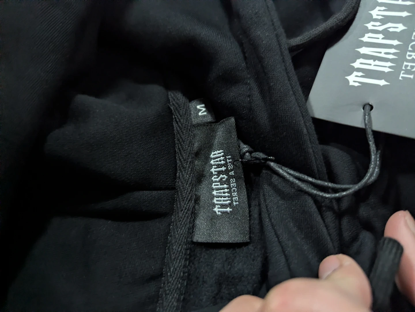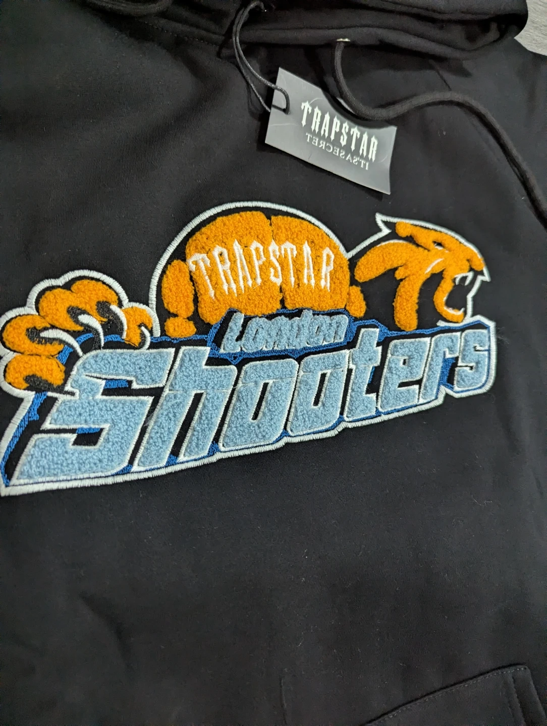 Selling a brand new Trapstar Shooters hoodie and pants set in black. The size is M. Never worn, with tags still attached!