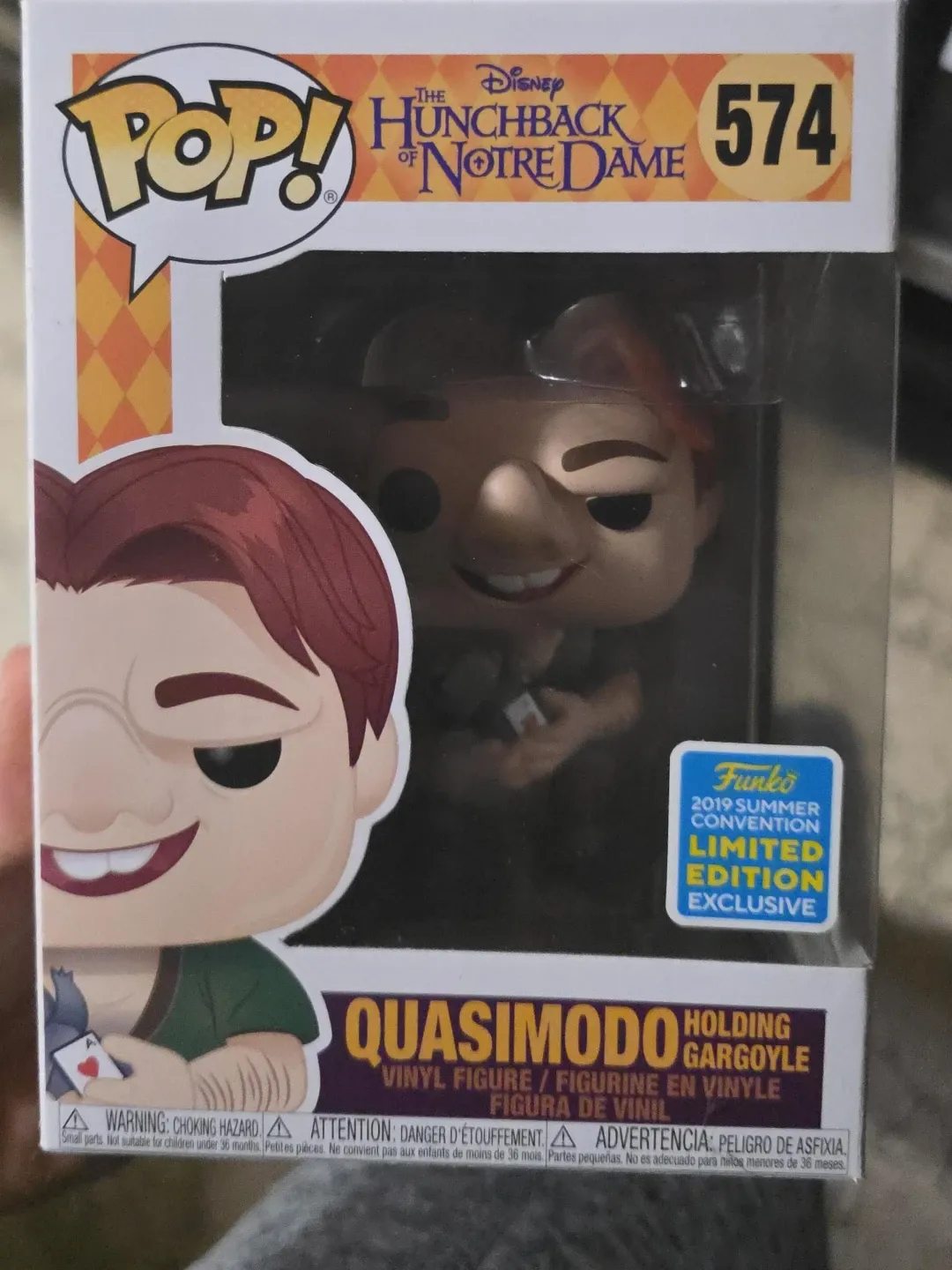 Selling a Disney Funko Pop! of Quasimodo, #574 from The Hunchback of Notre Dame. This is a Limited Edition Exclusive from the 2019 Summer Convention. It's in great condition and comes in the original box!