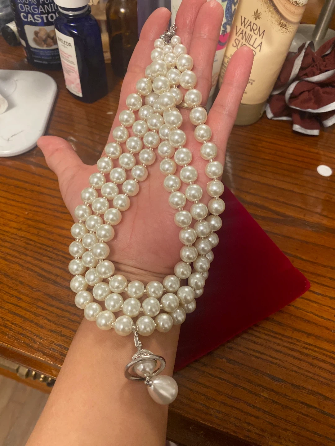 Selling a beautiful Vivienne Westwood pearl necklace! It's in great condition and would make a lovely addition to any outfit. The pearls have a lovely sheen, and the pendant adds a unique touch. High-quality