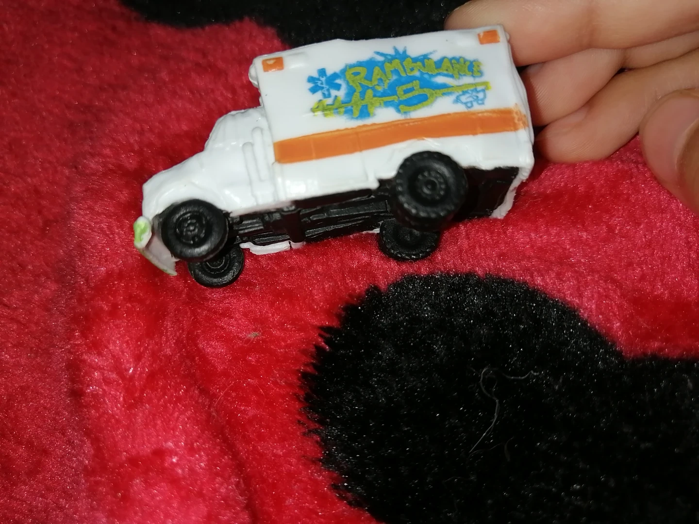 Selling a few toy cars, including a white ambulance with an orange stripe. Also included are a red car with the number 95 and a blue car. They are in used condition, but still fun to play with!