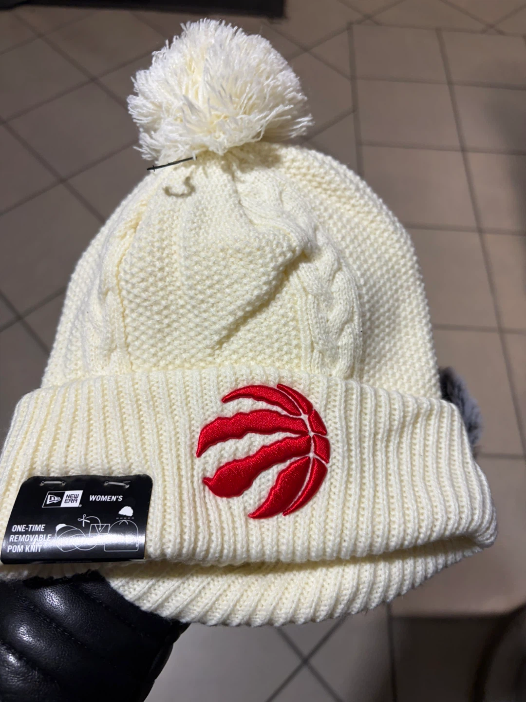 Selling a brand new with tags New Era women's Toronto Raptors beanie! It's a cream colour with a red Raptors logo and a fluffy pom-pom on top. Super soft and cozy, makes a great gift, or self-gift!