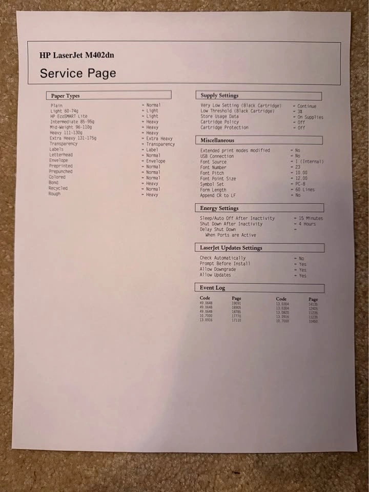 Model: HP LaserJet Pro M402dn