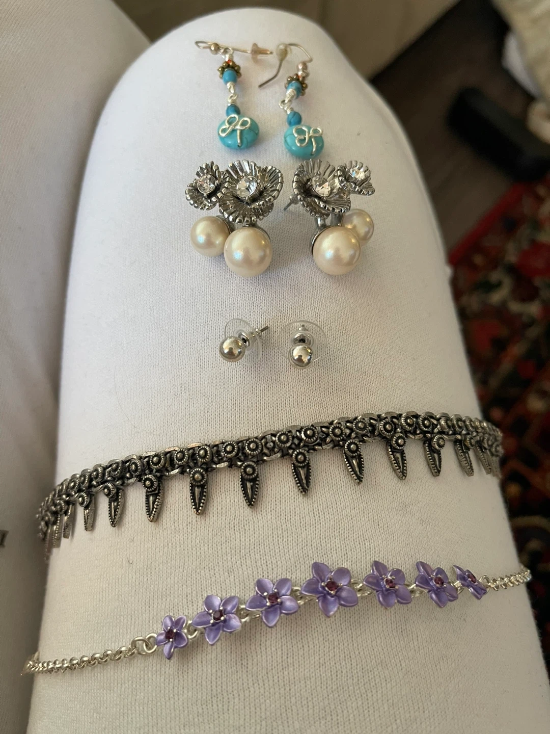 Selling a collection of earrings and bracelets! There are a variety of styles, from floral to beaded. Perfect for adding a little sparkle to your outfits!