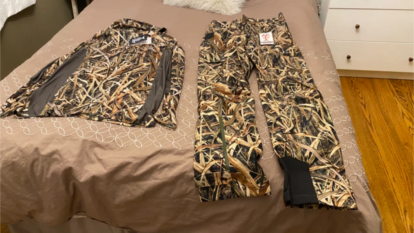 Selling 2 brand new sets of Bassdash fishing and hunting gear. Sizes are in photos. $80/set cash. Pick up only in Fulton.