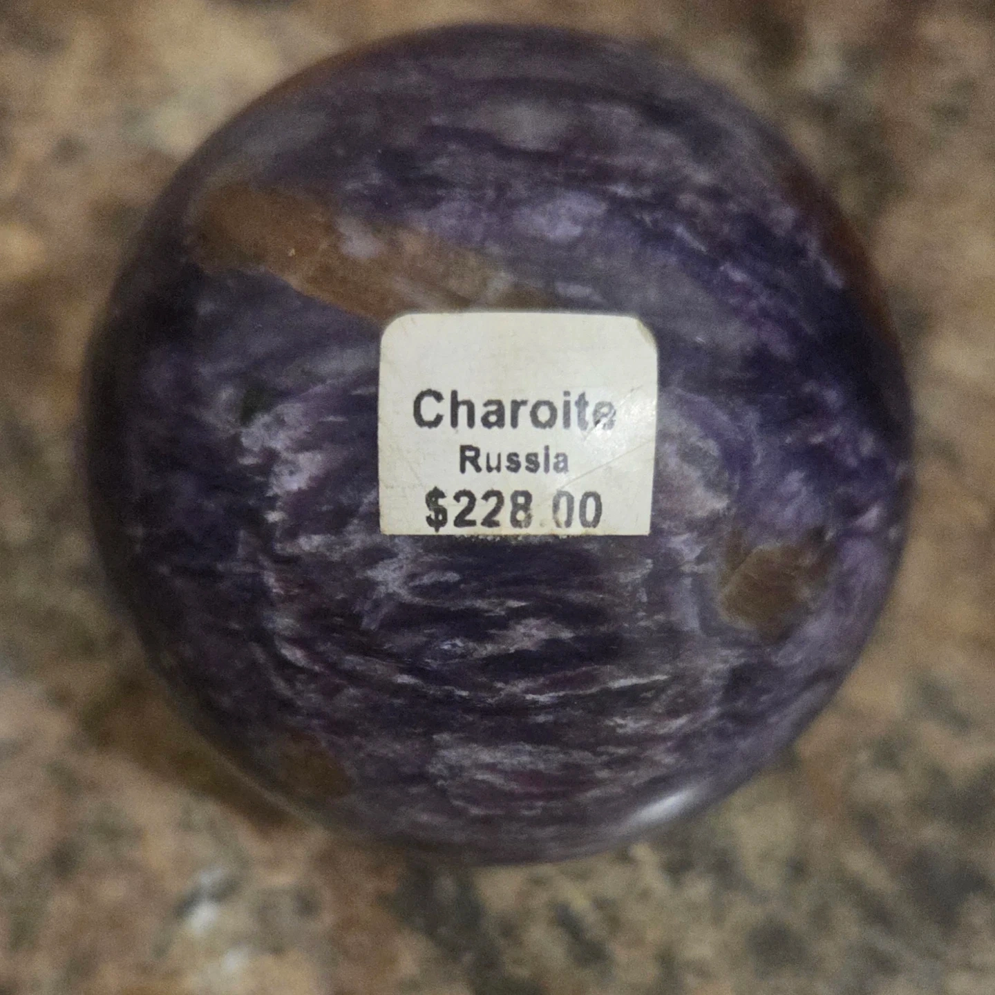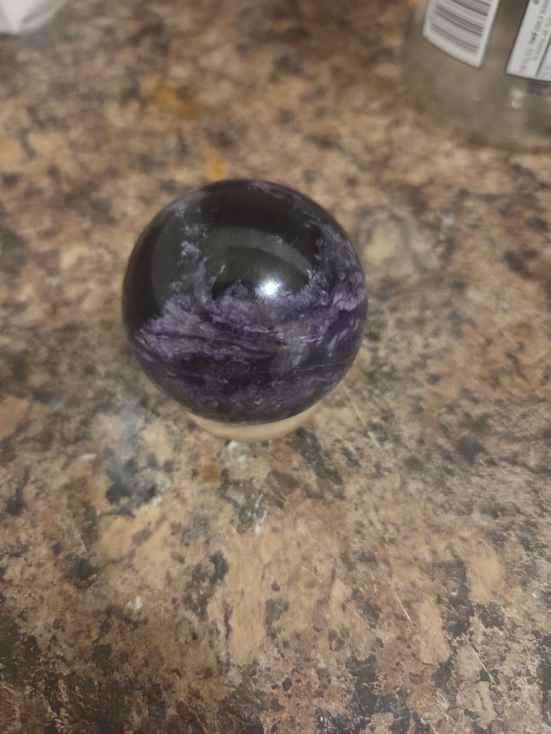 Selling a beautiful Charoite sphere sourced from Russia. It's a lovely piece with unique purple patterns. Originally priced at $228.00.