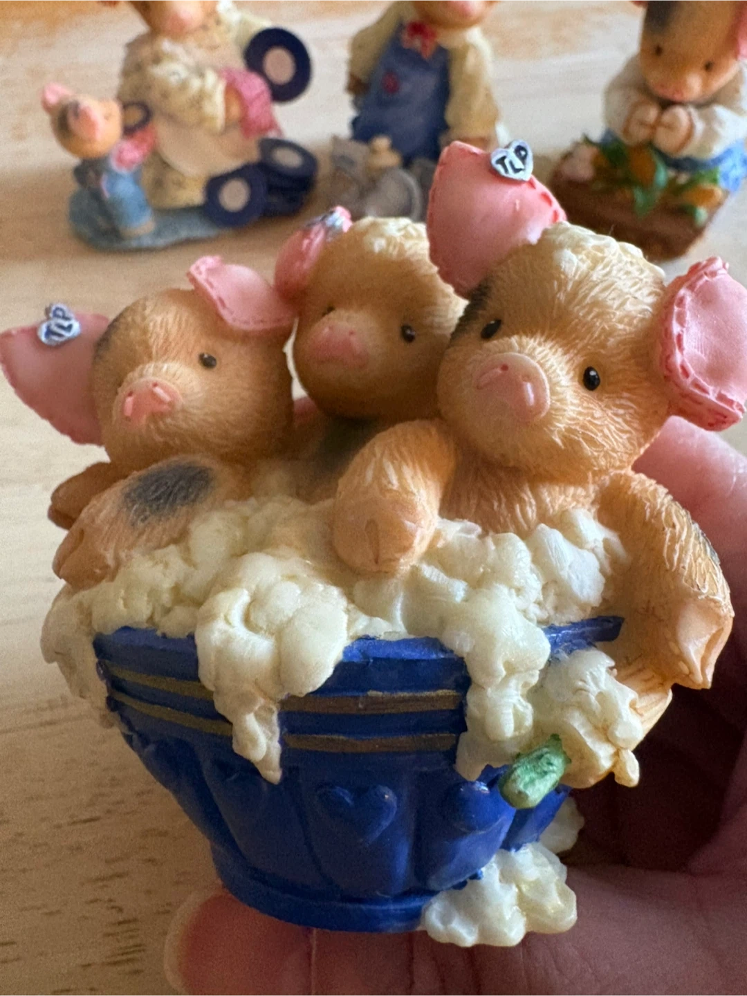 I'm selling a set of adorable Enesco Tailor & Co. pig figurines! This Little Piggy figurine's. These charming collectibles feature various pig characters in different scenes, adding a touch of whimsy to any space. They are in great condition and ready to bring joy to a new home!