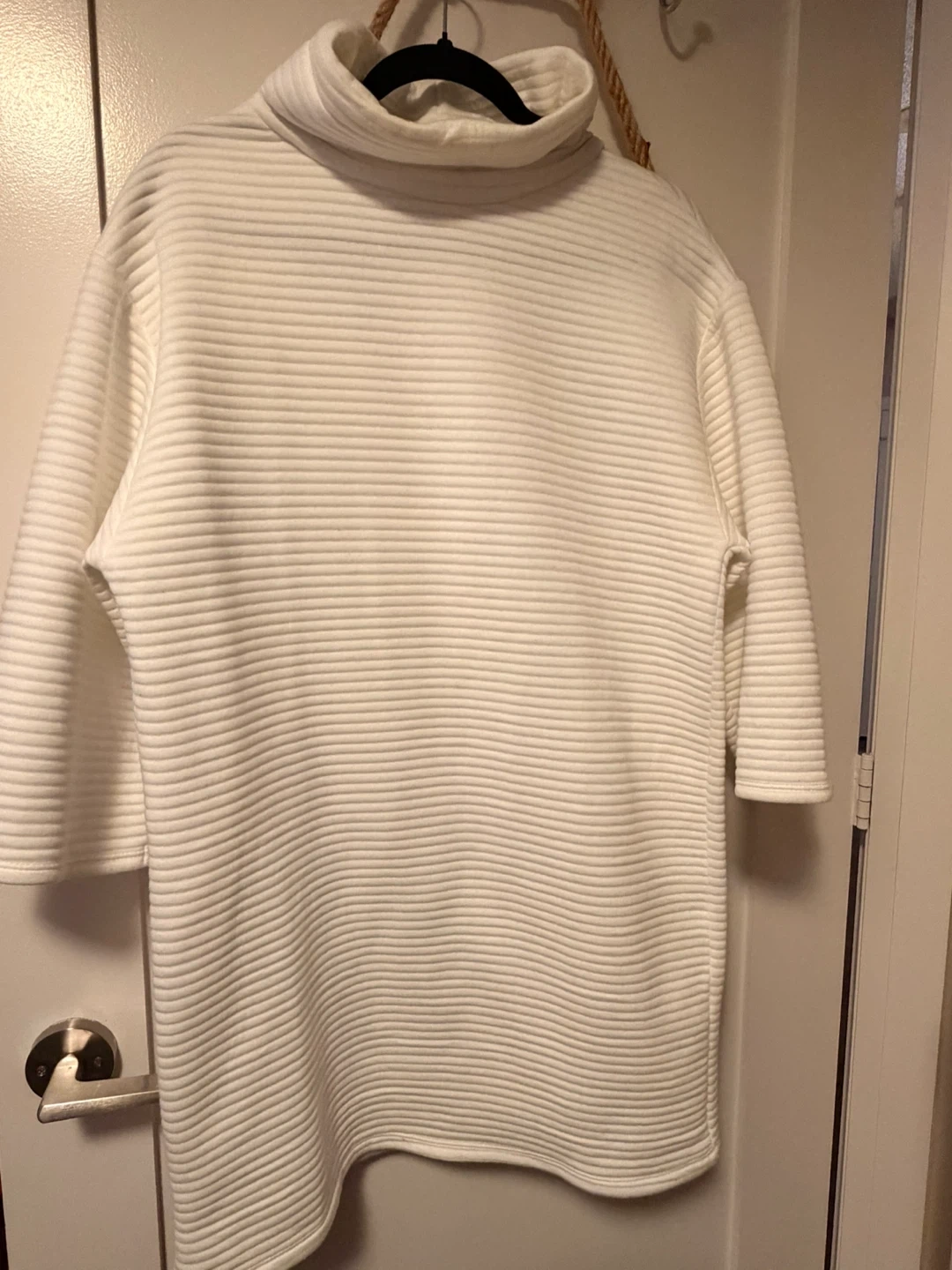Selling a lovely white ribbed dressIt's in great condition and would be a wonderful addition to your wardrobe. The material is soft and comfortable, It measures approximately 75 CM in length.