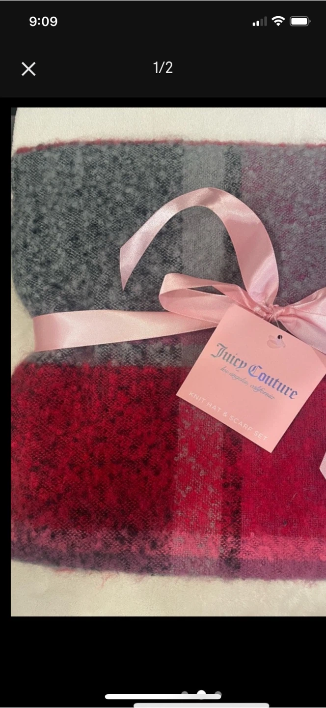 Cozy up with this cute Juicy Couture scarf. The scarf features a stylish plaid pattern in shades of grey, pink, and red, perfect for adding a pop of colour to your winter wardrobe. It's in brand new condition and ready to keep you warm!