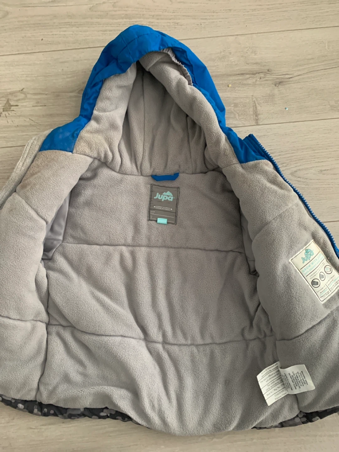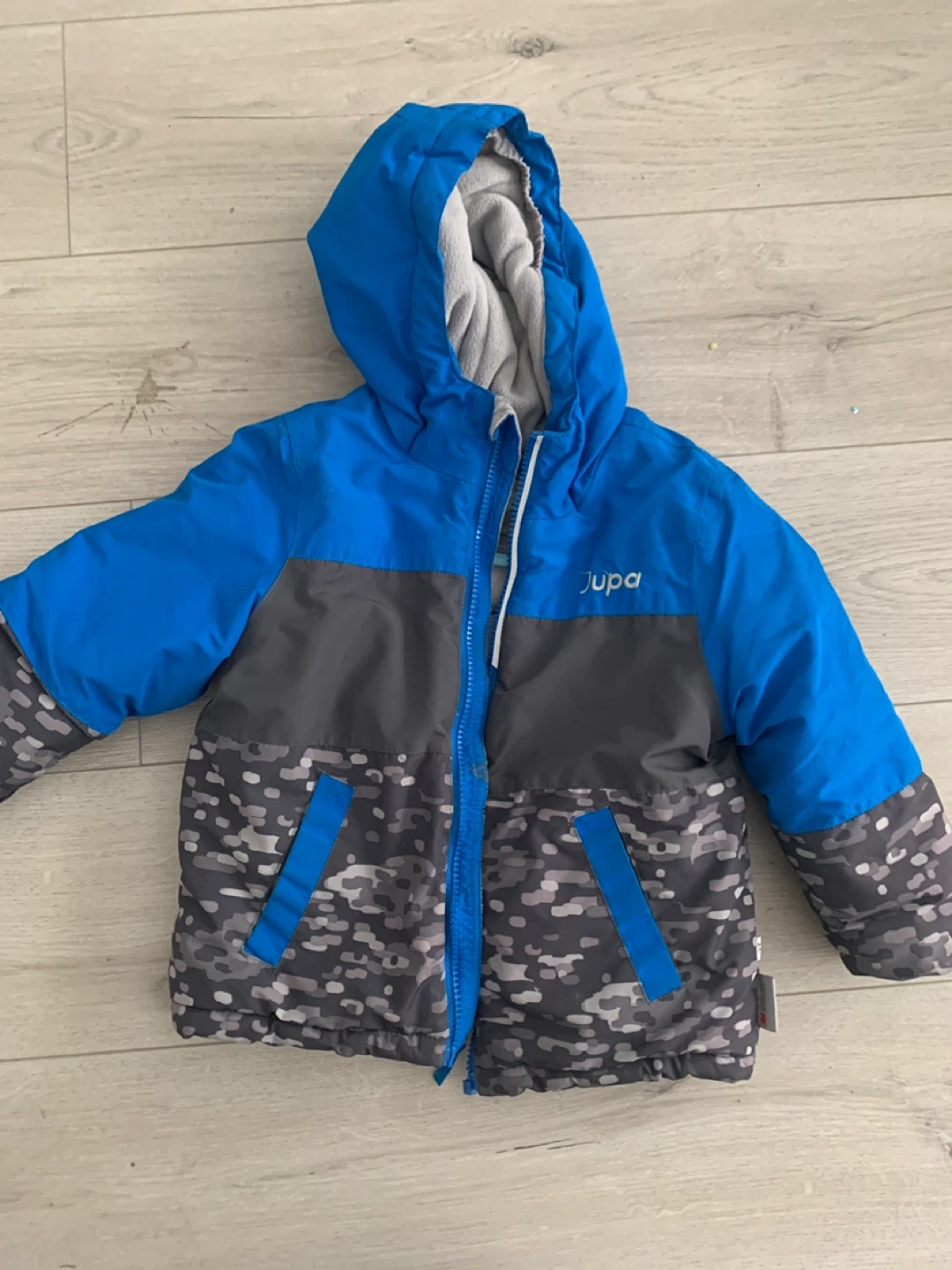 Cozy Jupa winter jacket, perfect for keeping your little one warm! It's a size 3T and features a stylish blue and grey design. Great for Canadian winters!