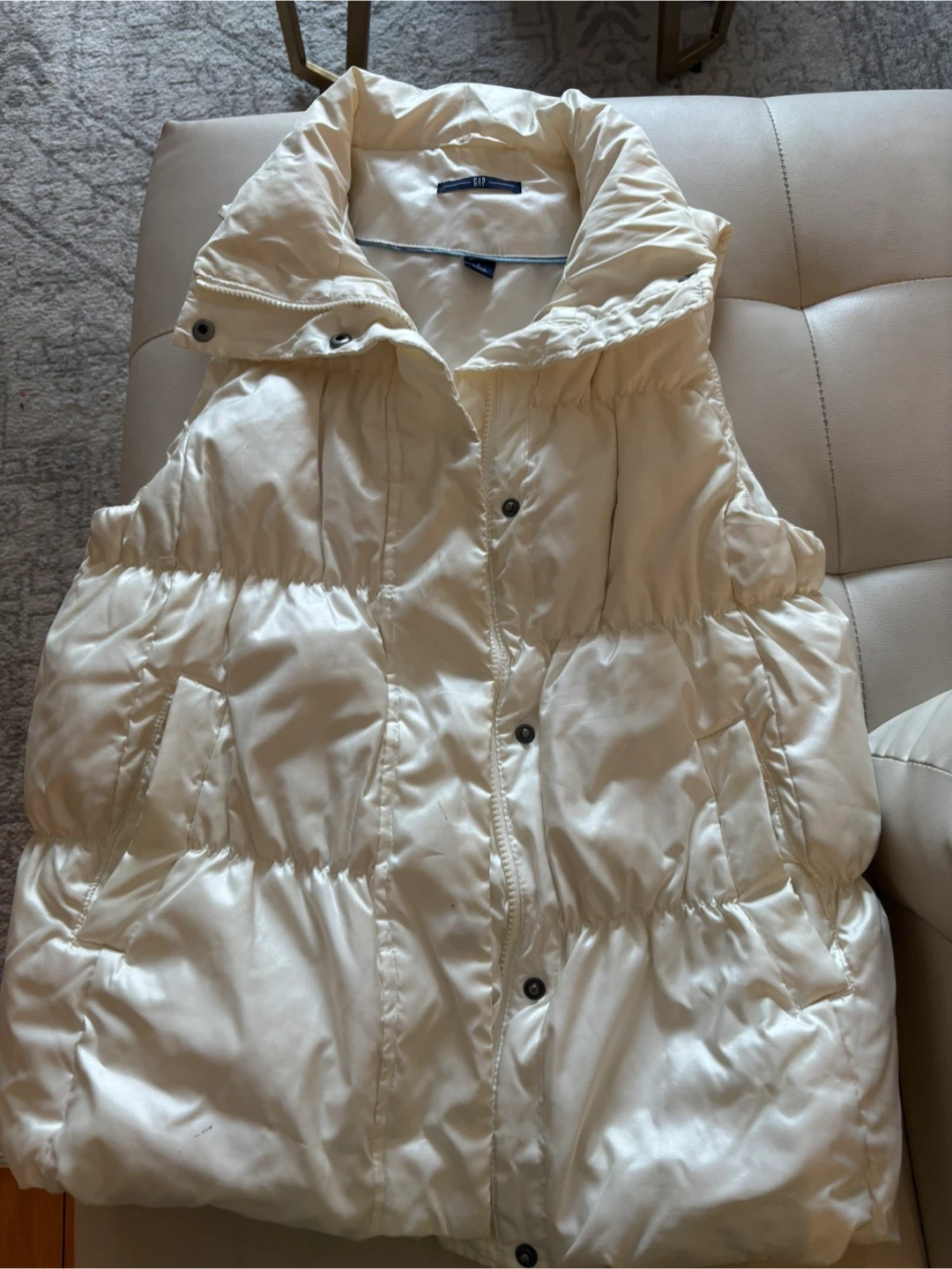 Gap puffer vest in ivory, size L. It's in great condition and ready for a new owner. Perfect for layering during the cooler months!