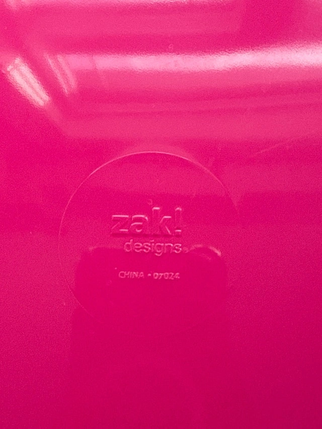 Add a pop of colour to your serving game with this Zak! Designs service tray! This vibrant pink tray is perfect for carrying snacks, drinks, or even breakfast in bed. It's brand new and ready to brighten up your day. Dimensions are roughly 15 inches by 12 inches.