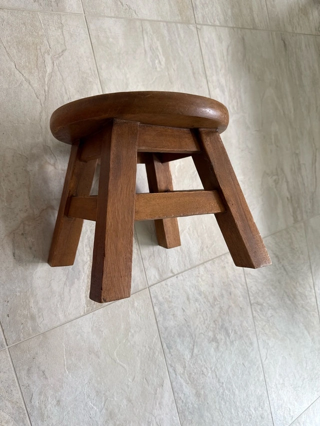 This is a whimsical and sturdy wooden stool featuring an adorable elephant design, perfect for a child's room. This stool has a unique hand-painted elephant and flower design, adding a touch of charm to any space. The stool is brand new and ready for use. It’s a delightful piece that combines practicality with playful artistry. I found similar stools on Kijiji selling for around $20-$40. I'm pricing this in the middle, hoping for a quick sale. * Solid wood construction * Hand-painted design * Perfect for kids If the ad's up, it's still available!