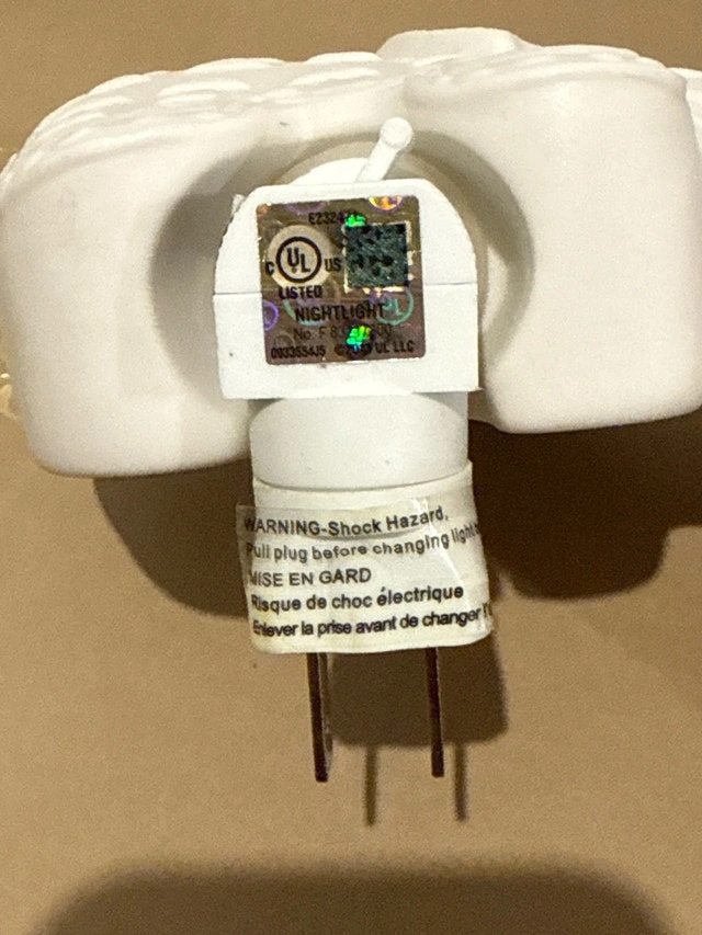 This adorable white elephant night light is perfect for a child's room or anyone who loves elephants! It's in great condition and provides a soft, comforting glow. Crafted of ceramic with plastic threaded socket.