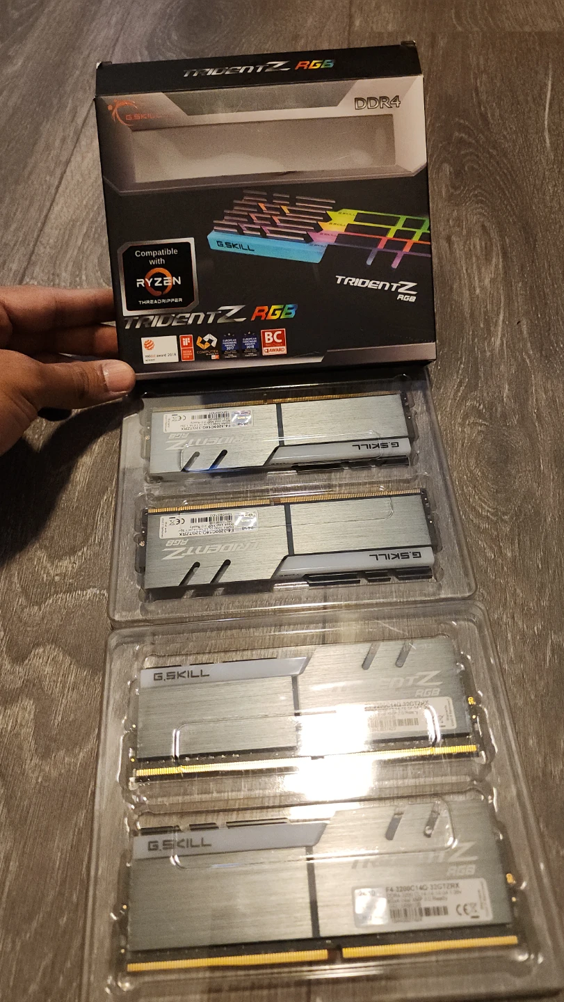 Selling a G.Skill Trident Z RGB DDR4 32GB (4 x 8GB) RAM kit! This is the F4-3200C14Q-32GTZR model. It's in great condition and comes with the original box. Perfect for upgrading your gaming PC or workstation in times like these whene RAM prices are through the roof.