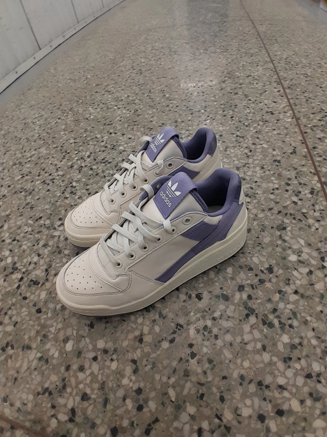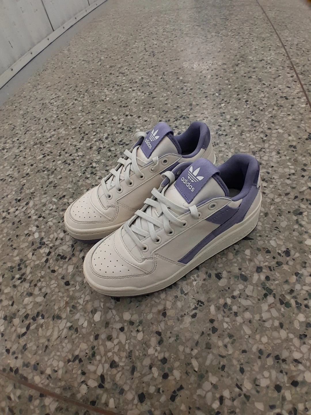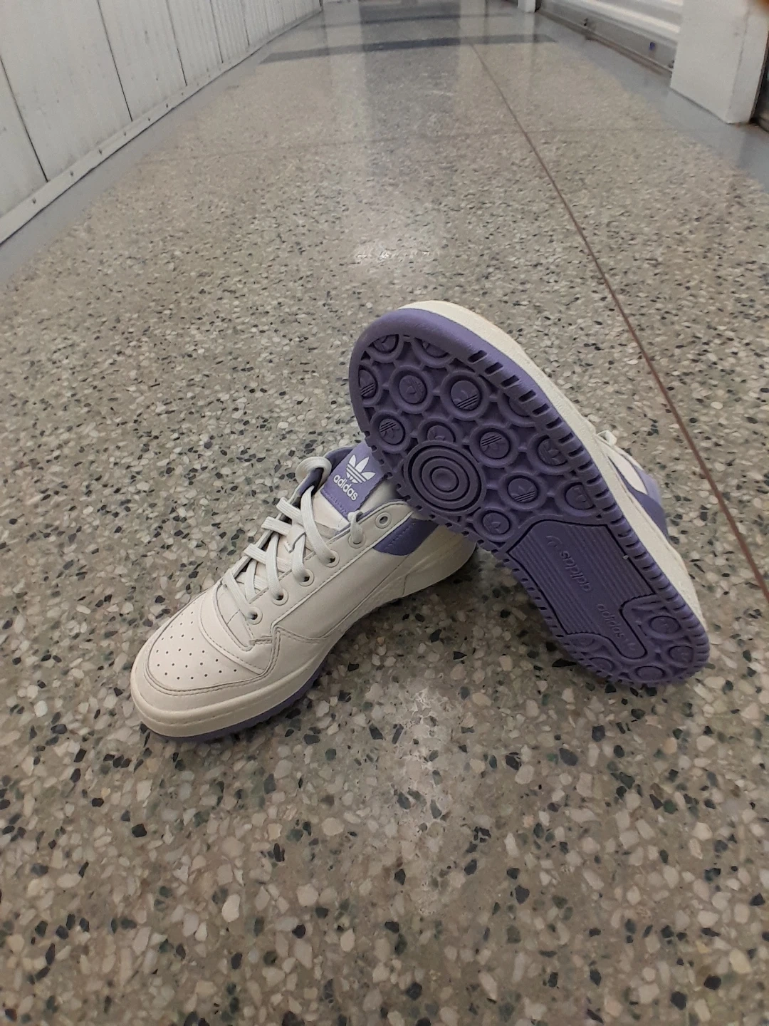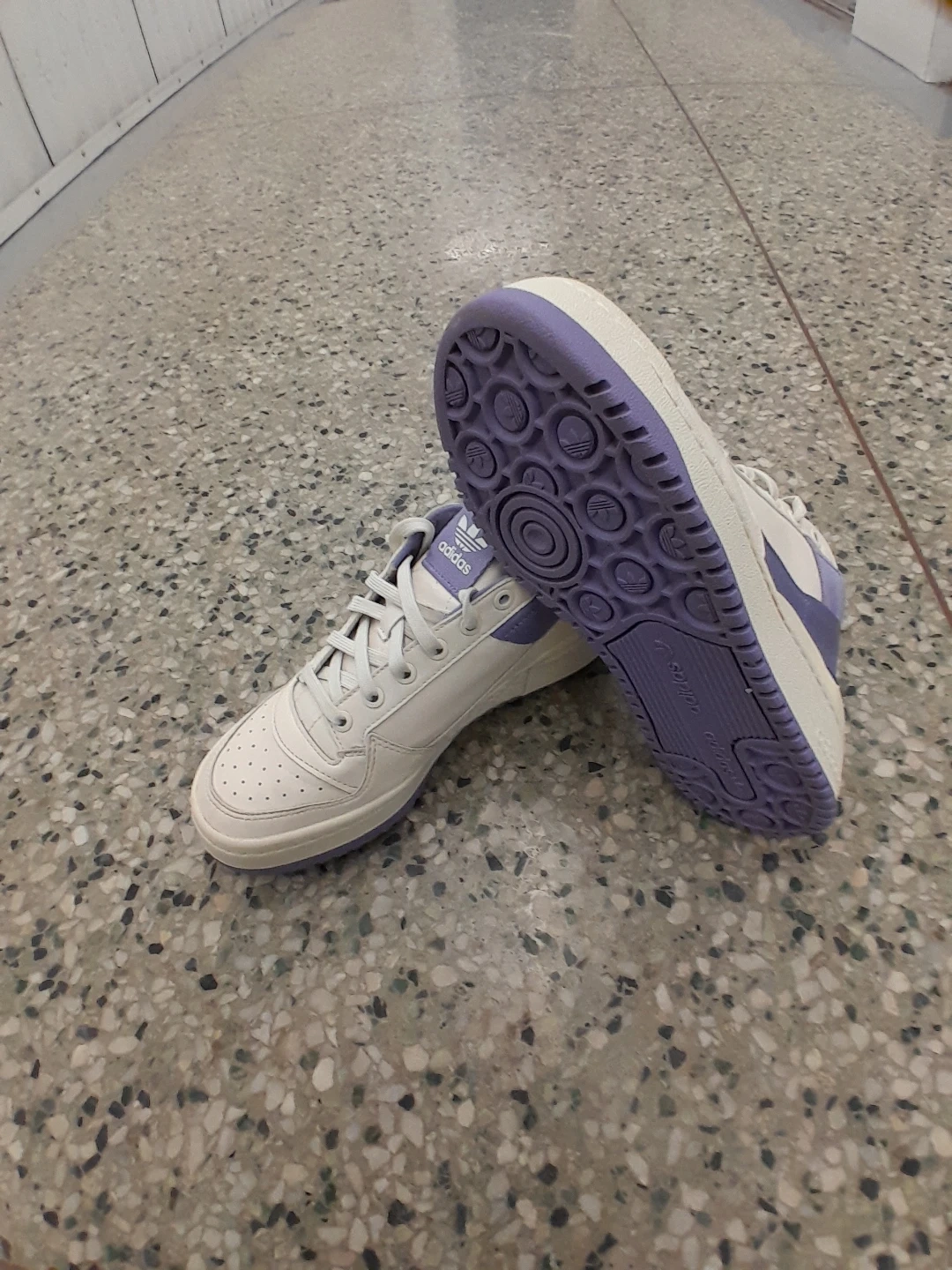 Adidas Forum Low women's sneakers in a lovely off-white and lavender colourway. They're in great shape and ready for a new home! Size girls size 7