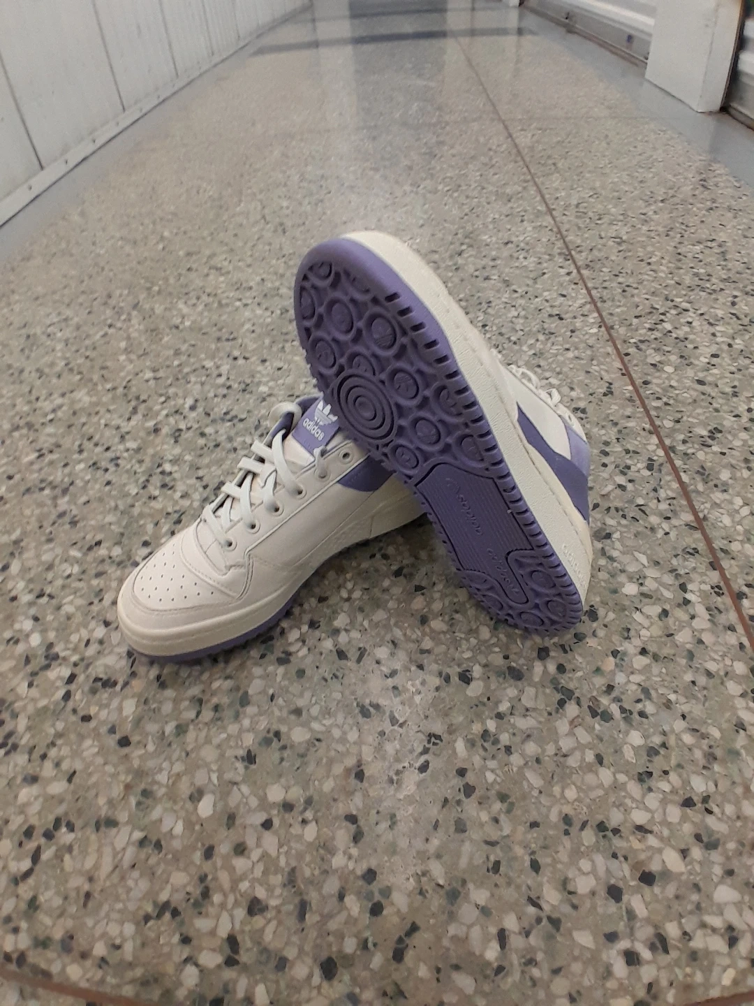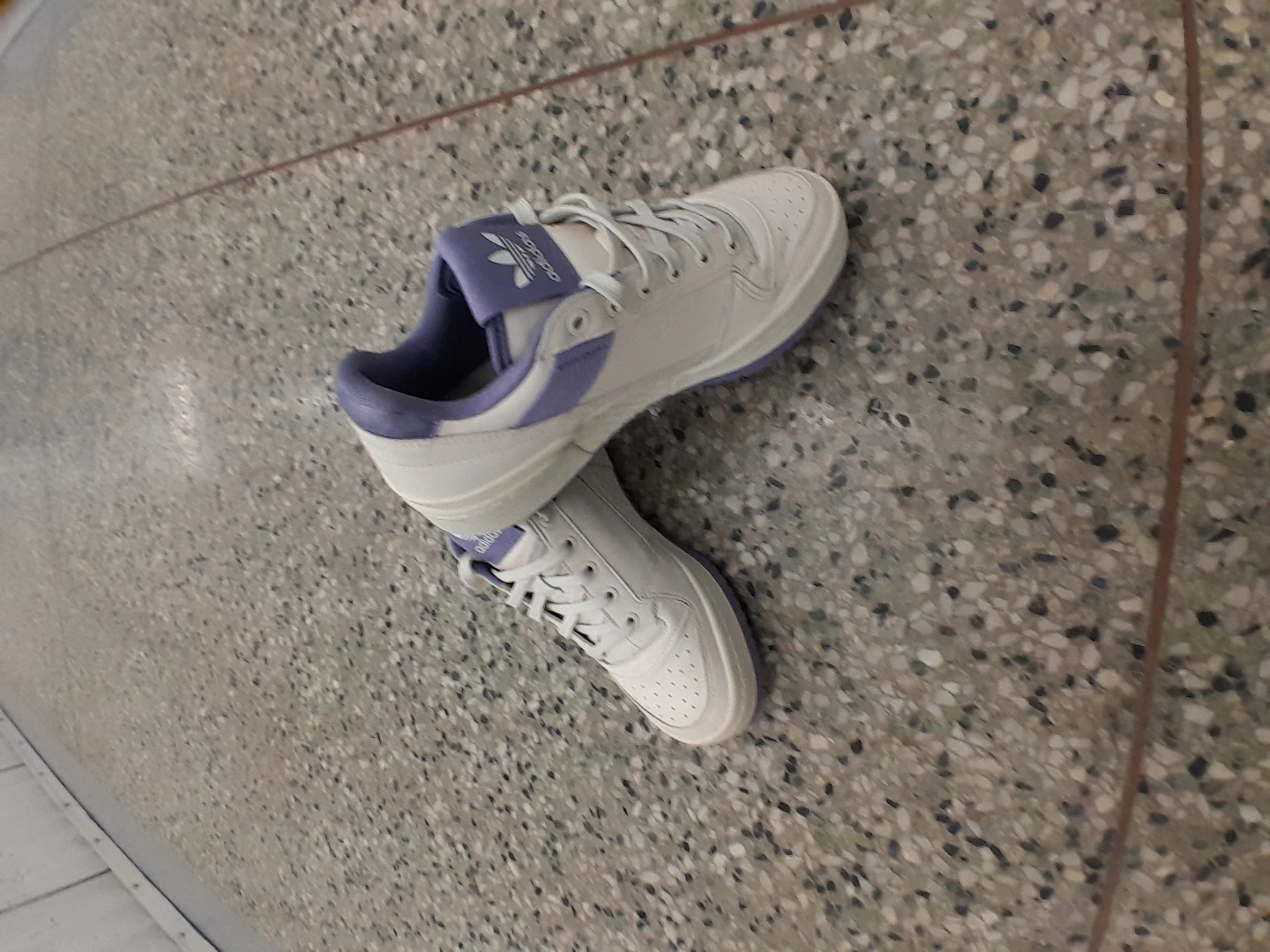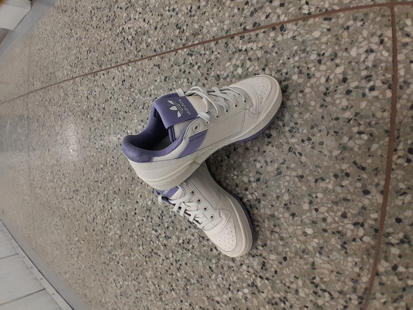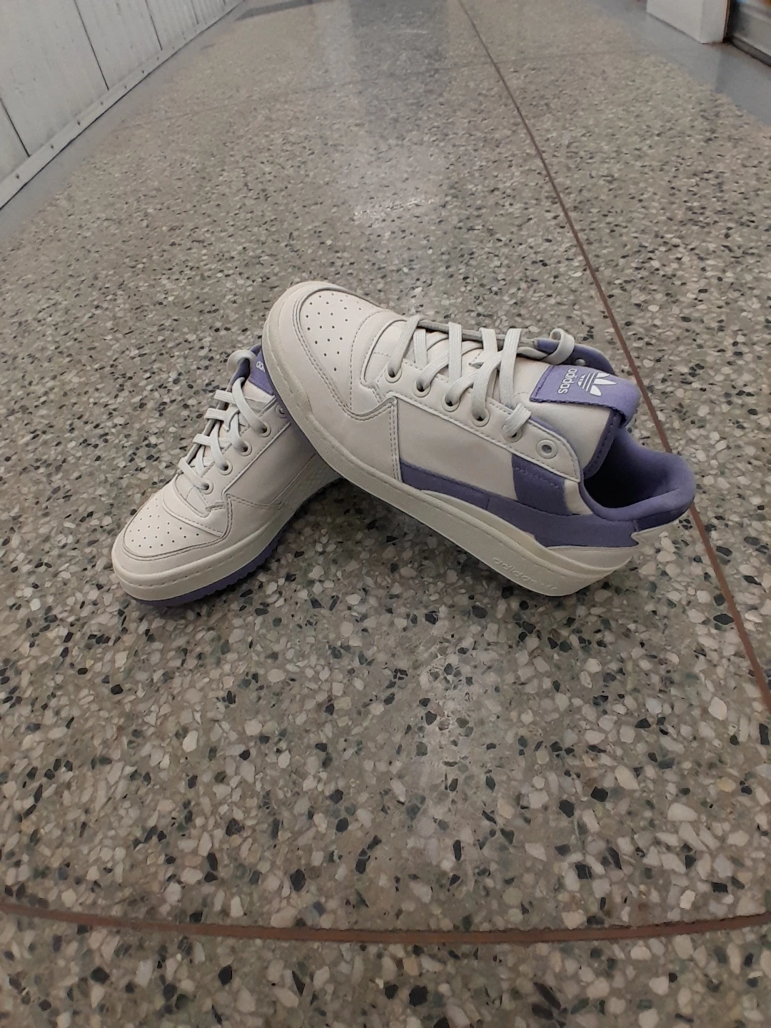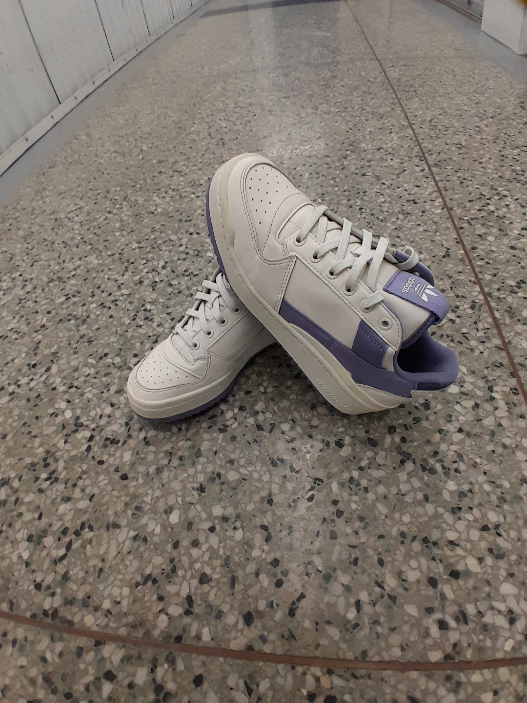 Adidas Forum Low women's sneakers in a lovely off-white and lavender colourway. They're in great shape and ready for a new home! Size girls size 7