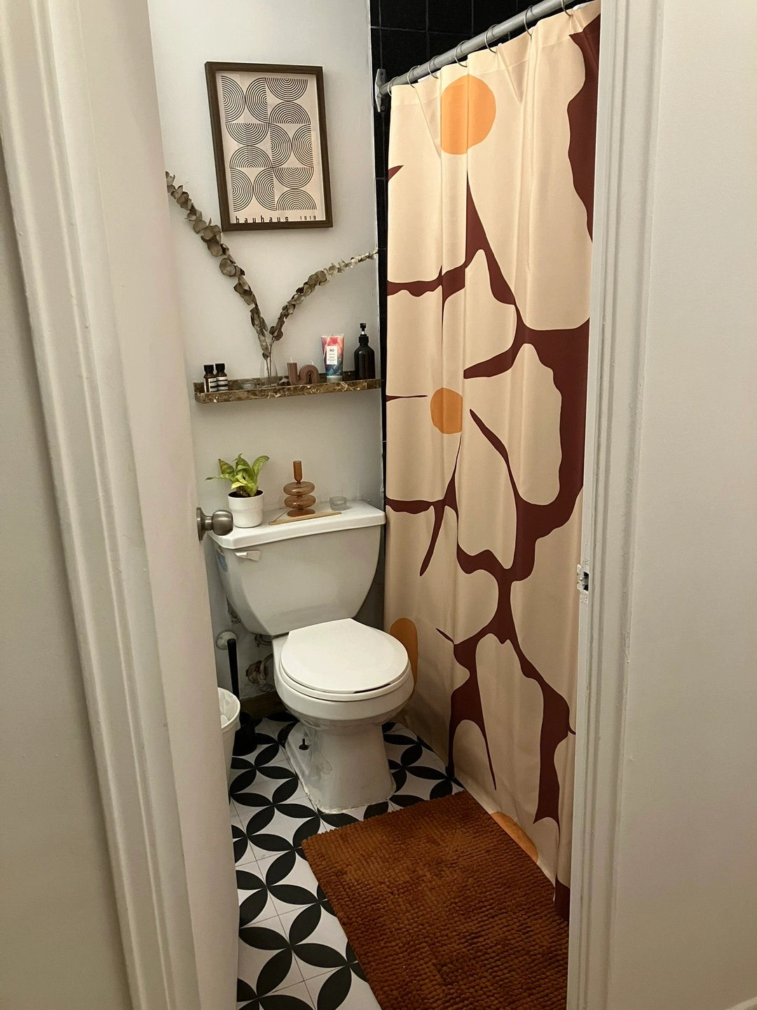 Unique design, created by independent artist. Floral shower curtain in neutral colours. Perfect for adding a touch of mid century style to your bathroom!