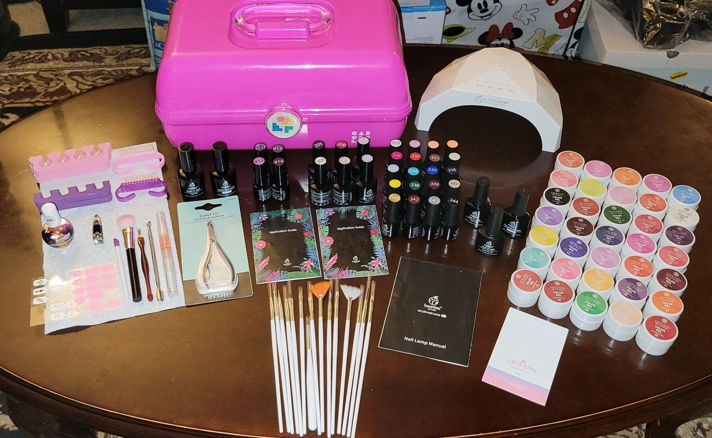 * Nail Lamp manual, Saviland gel paint set manual, and (2) Beetles Gel Polish application guides are included.