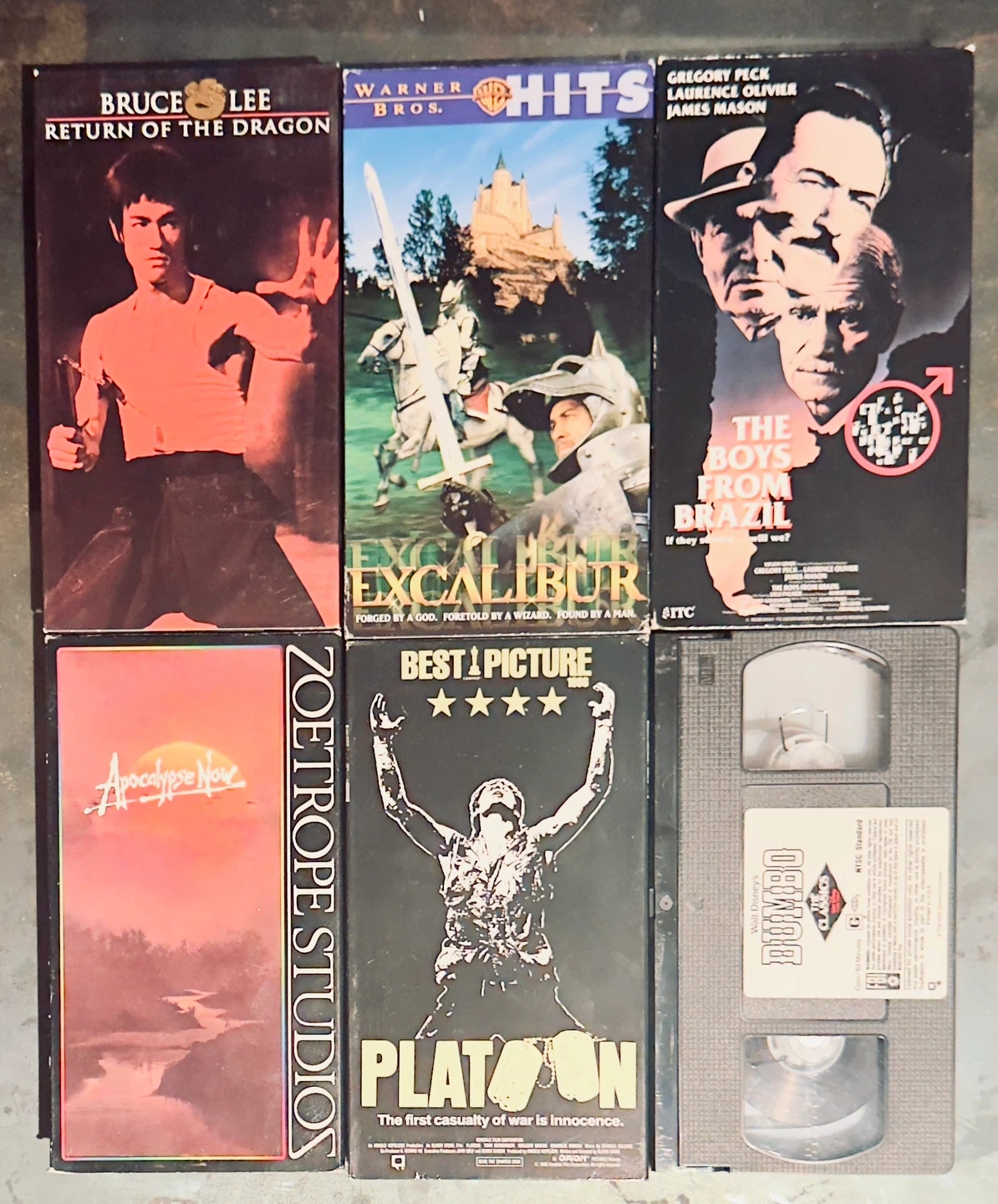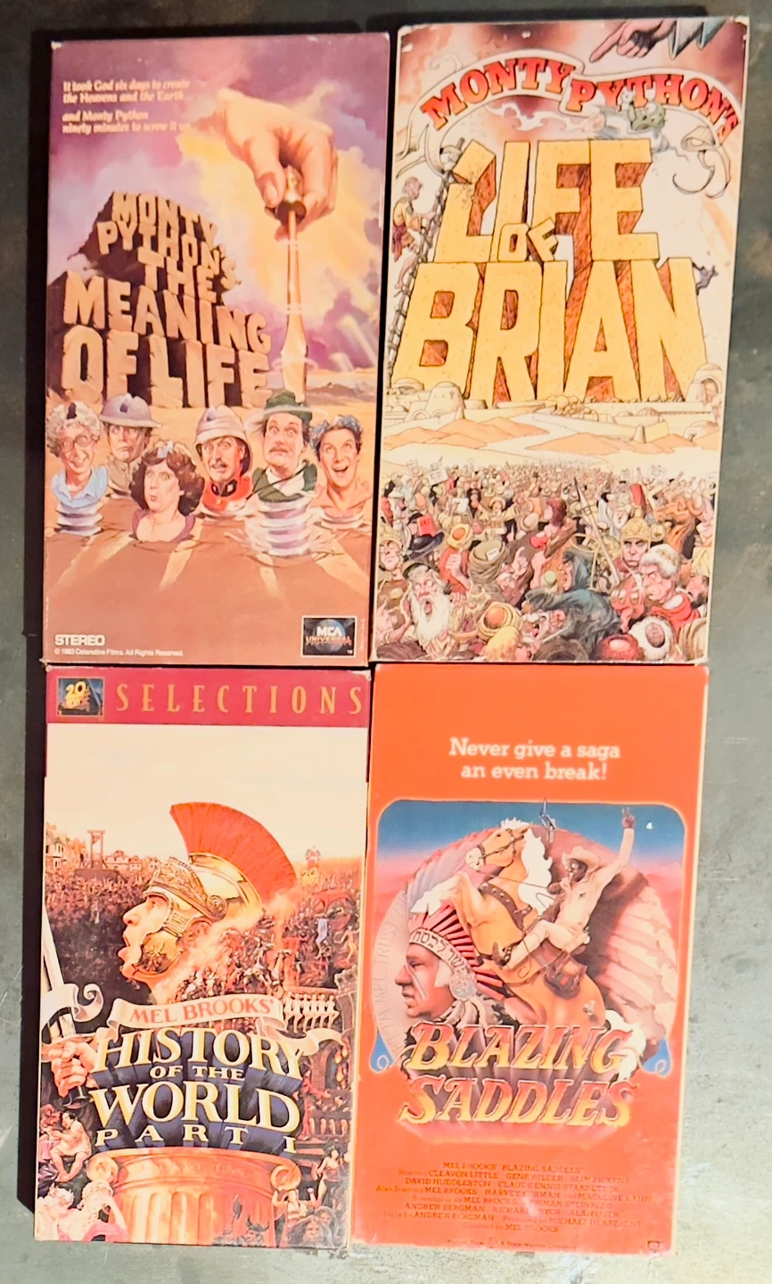 Selling a collection of VHS tapes with classic movies like The Godfather trilogy, Chinatown, One Flew Over the Cuckoo's Nest, and more! Titles include The Blues Brothers, Ferris Bueller's Day Off, and Monty Python's Life of Brian. A great way to relive some cinematic history!