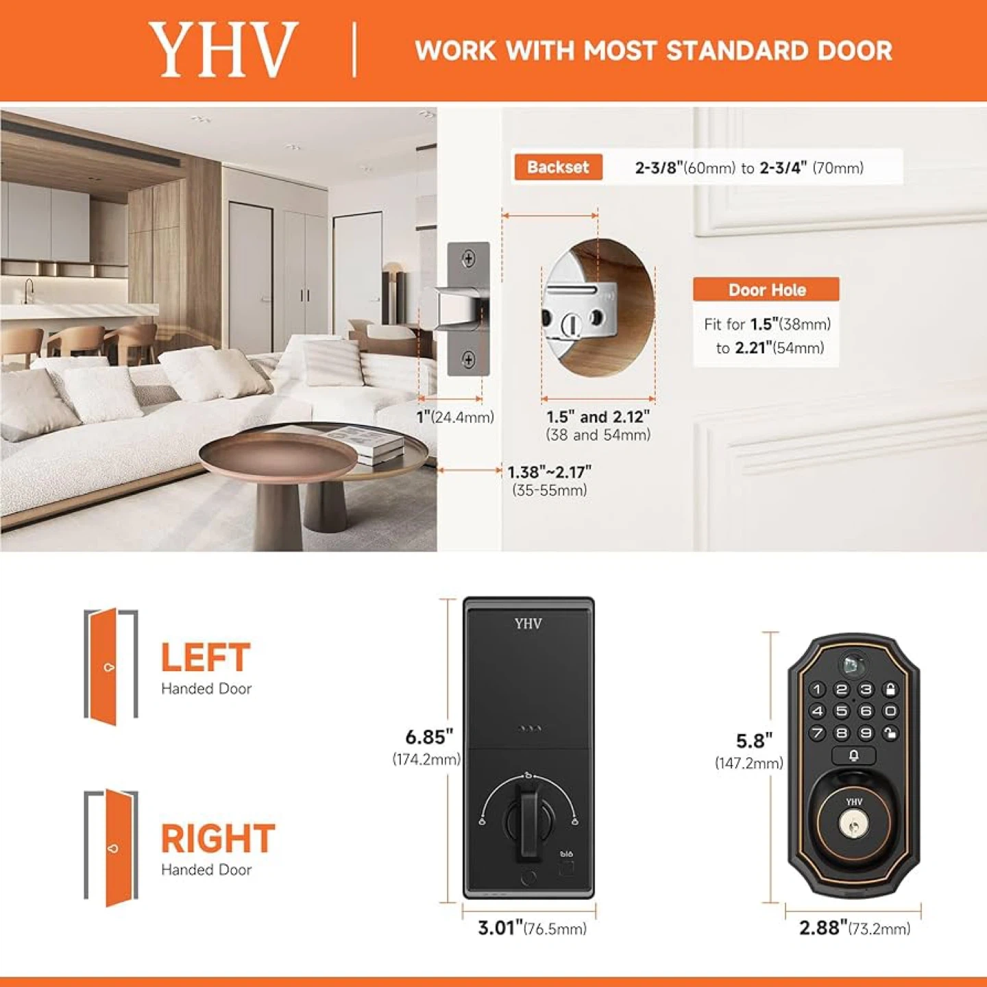 Keyless Entry Door Lock with Camera Fingerprint Smart Door Lock with App Remote Control, Wi-Fi Connected Electronic Keypad Code Deadbolt Auto Unlock for Front Door