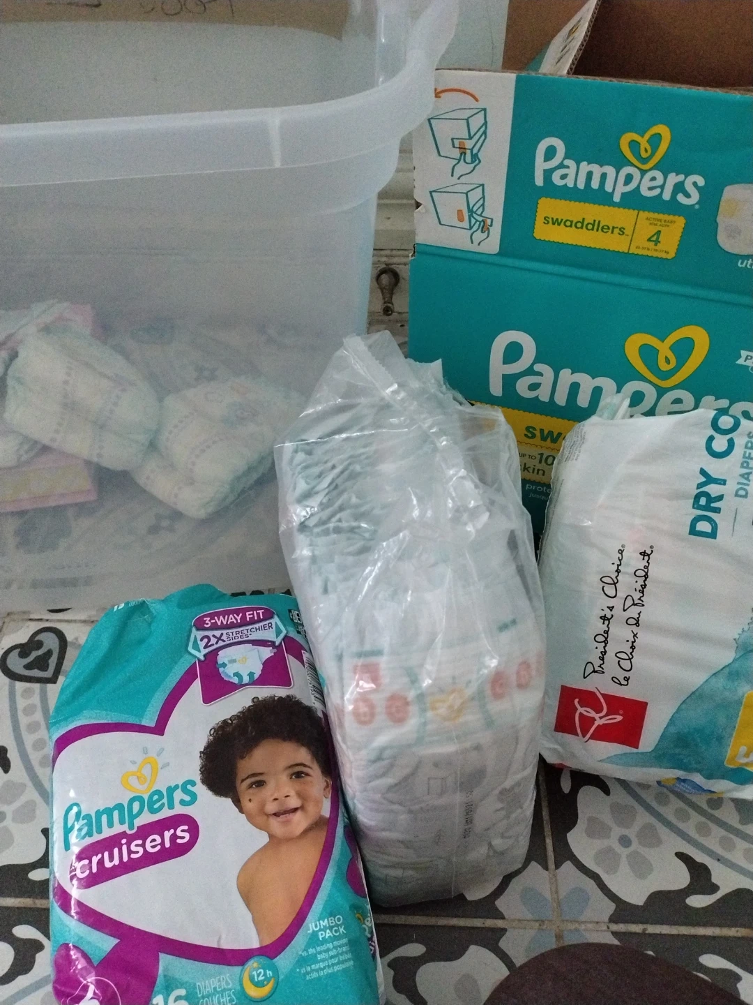 Size 6: 14 diapers left in opened Pampers Cruisers.