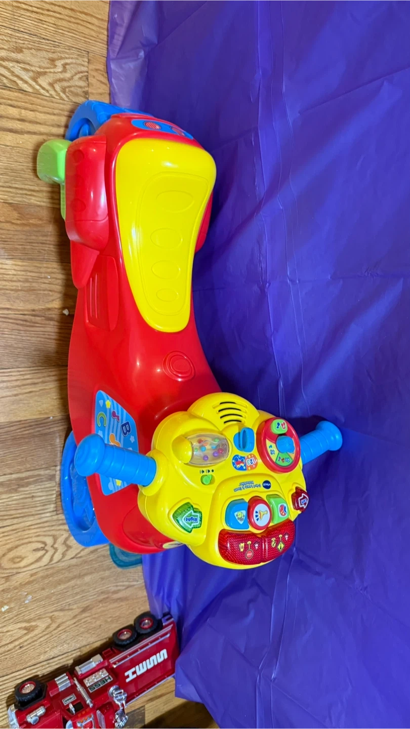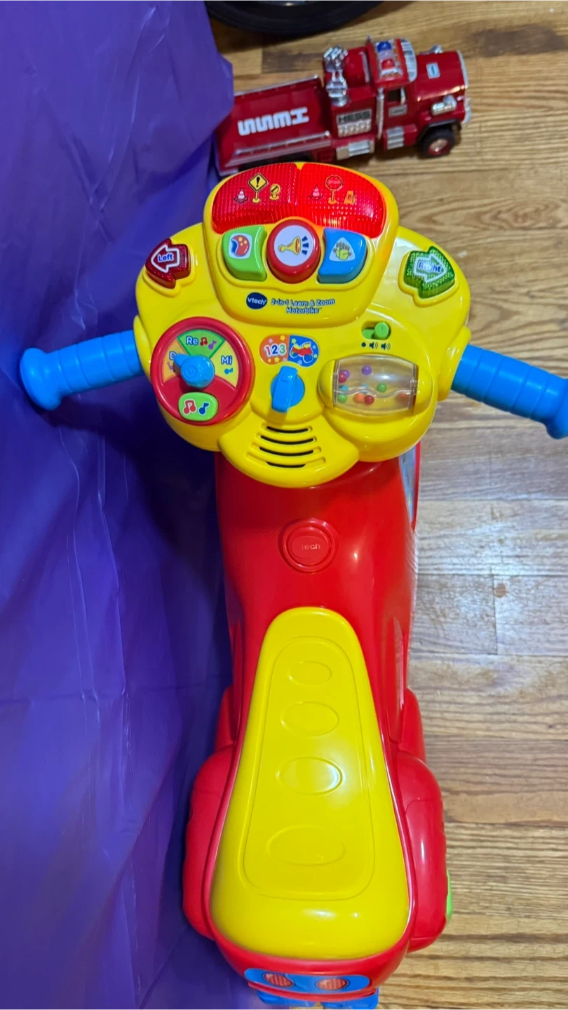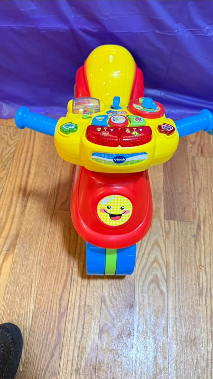 I'm selling a VTech 2-in-1 Learn & Zoom Motorbike! It's in great condition and ready for a new rider. This interactive toy helps your little one learn while they play. It features fun sounds, lights, and educational games to keep them entertained. Perfect for toddlers who are learning to explore and develop their motor skills