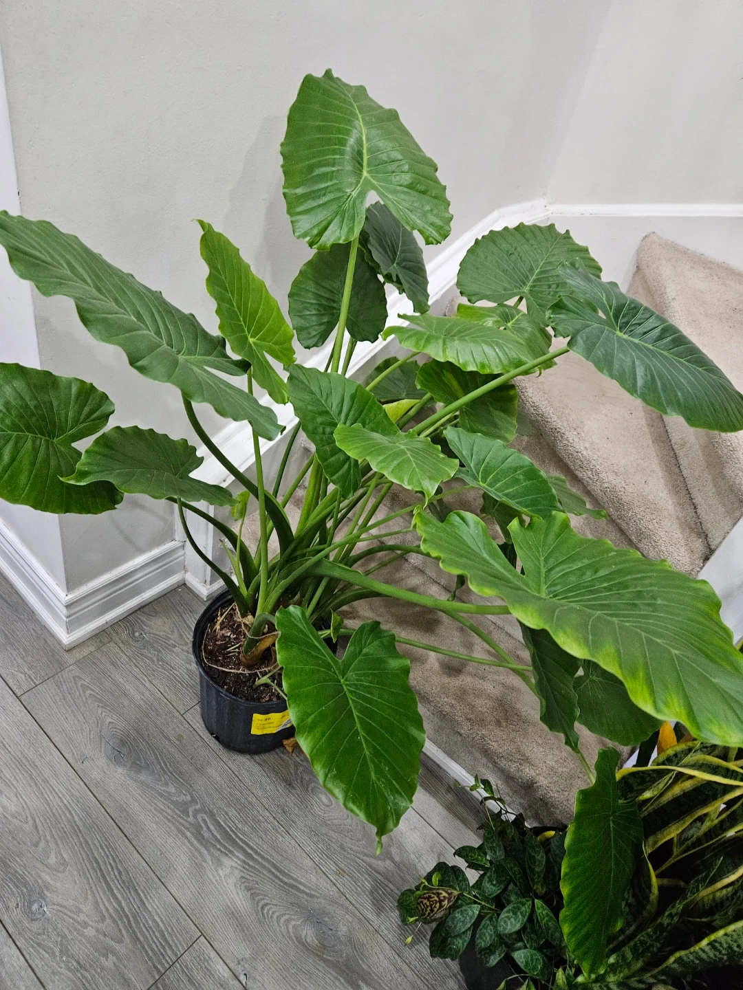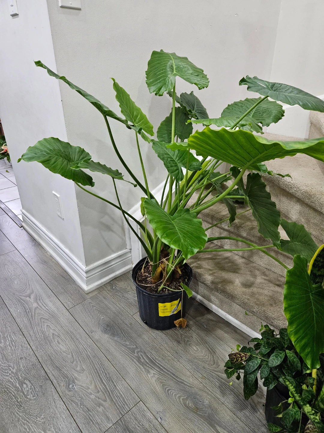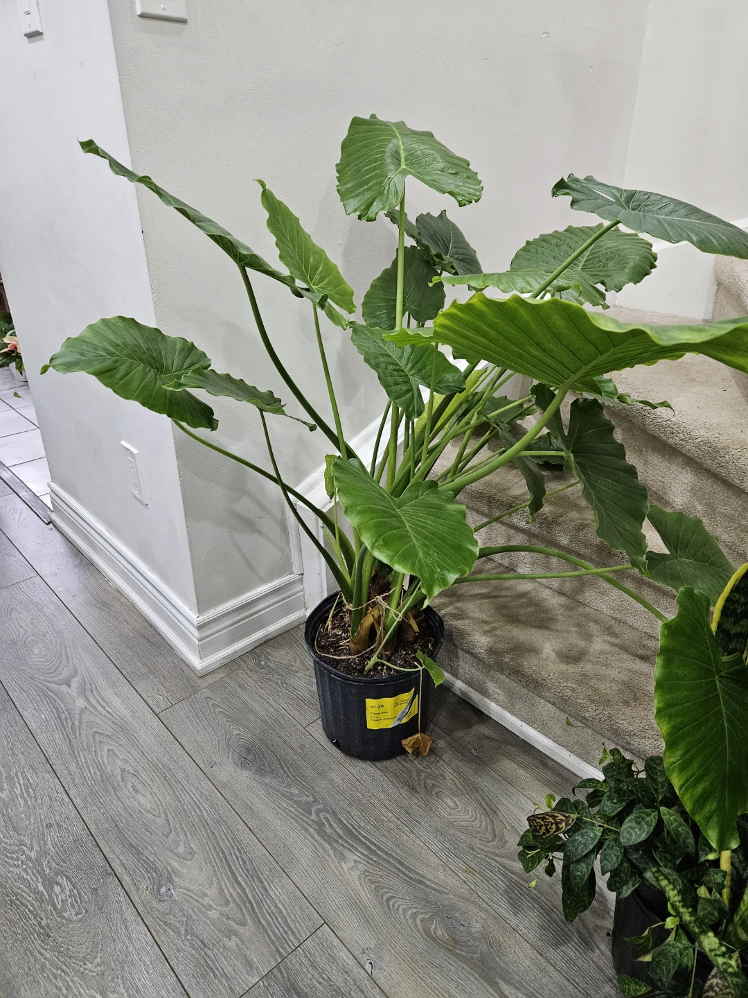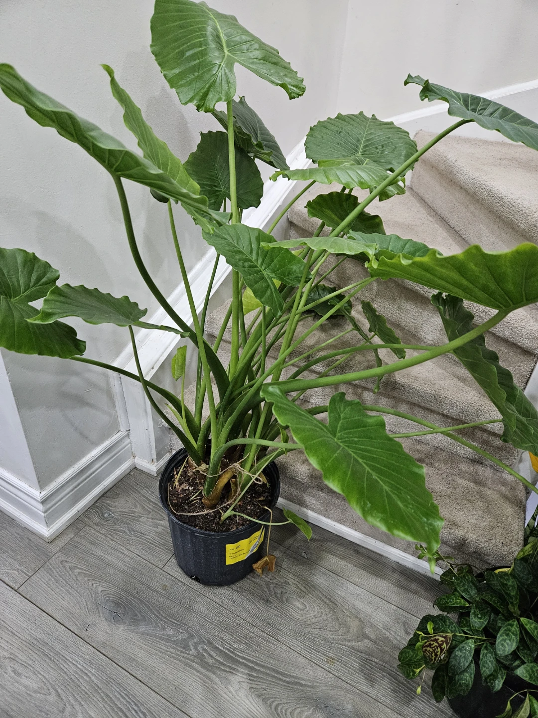 Selling a healthy elephant ear plant, potted in a black container. This plant features large, vibrant green leaves that add a tropical touch to any space. It’s ready to brighten up your home!