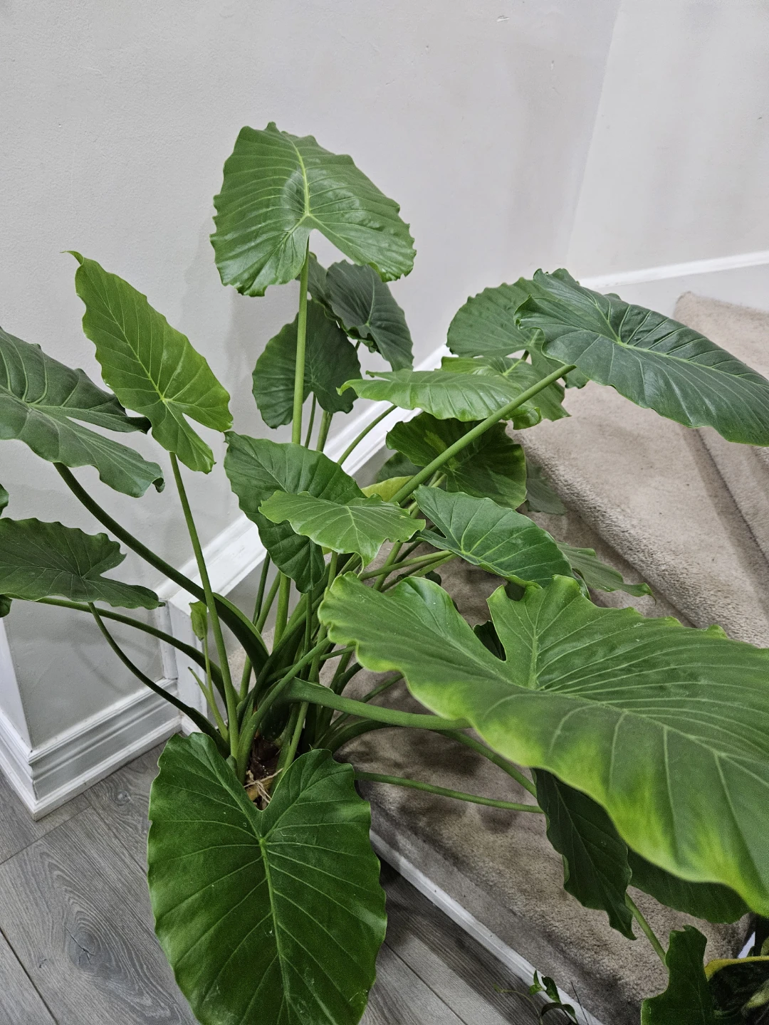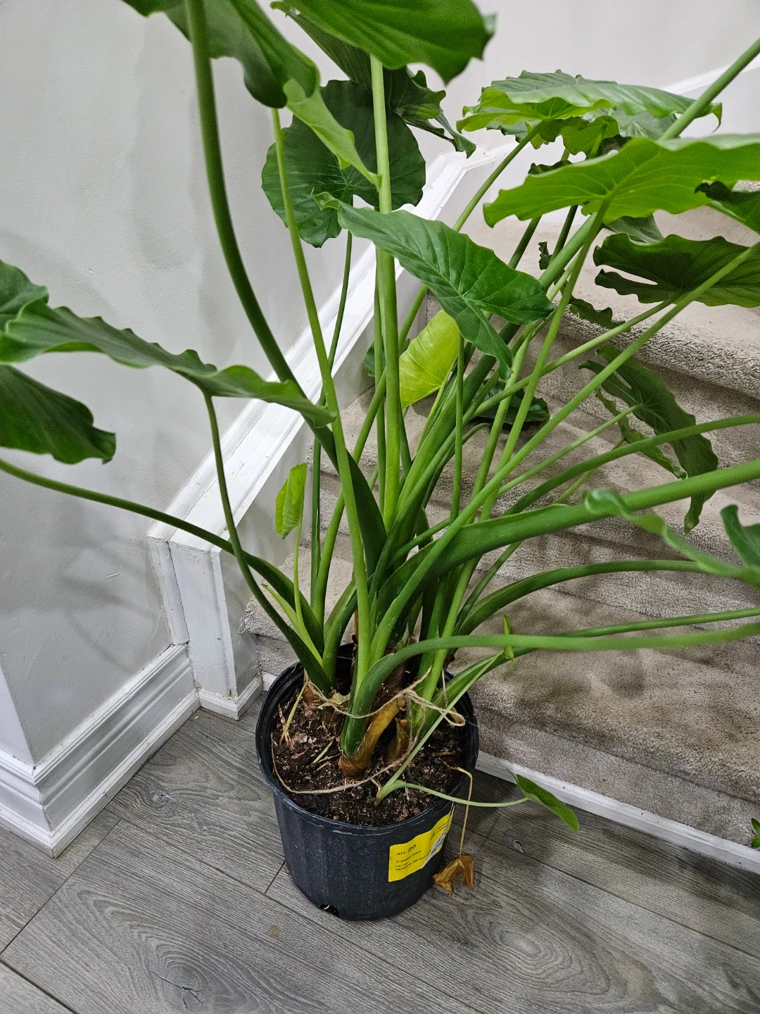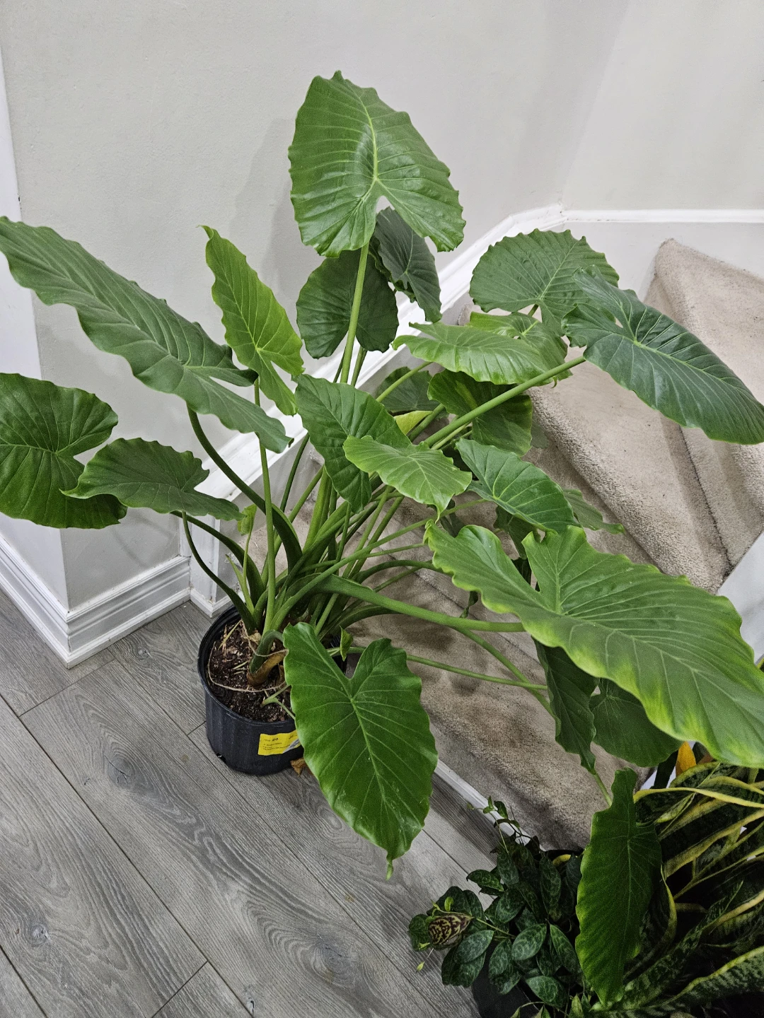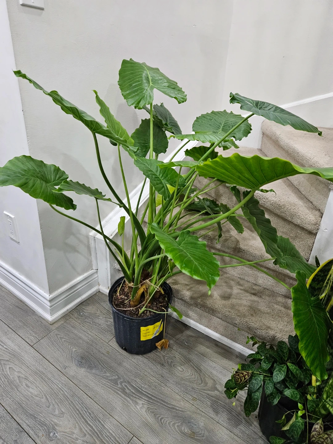 Selling a healthy elephant ear plant, potted in a black container. This plant features large, vibrant green leaves that add a tropical touch to any space. It’s ready to brighten up your home!
