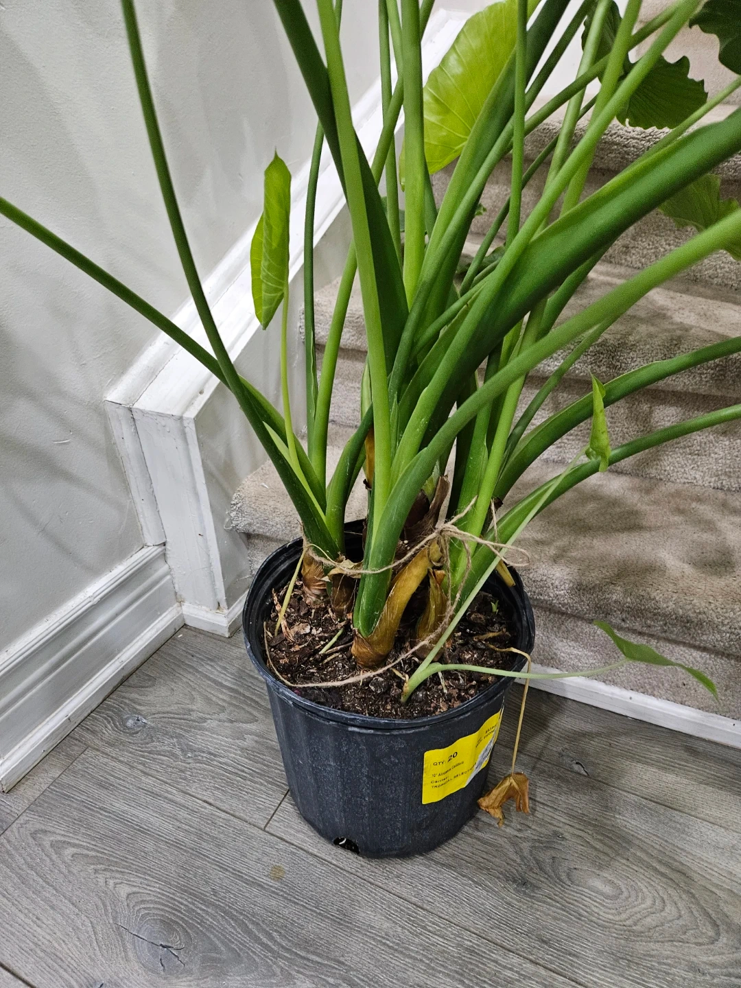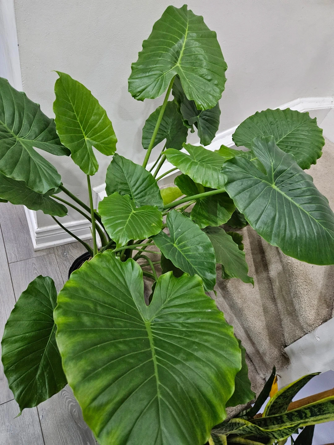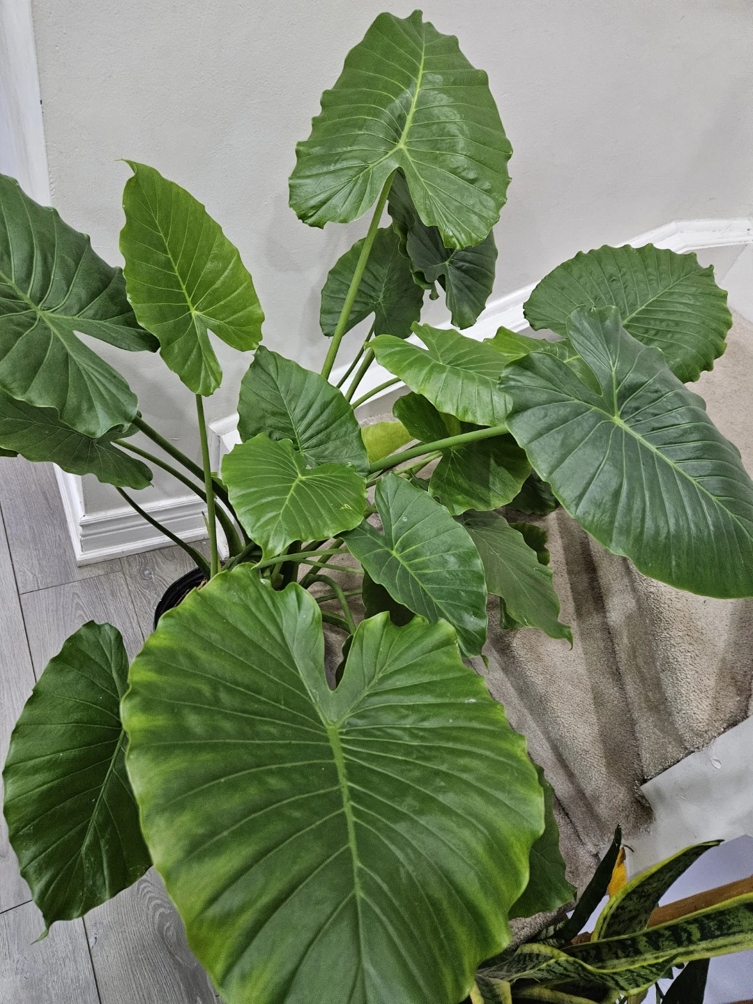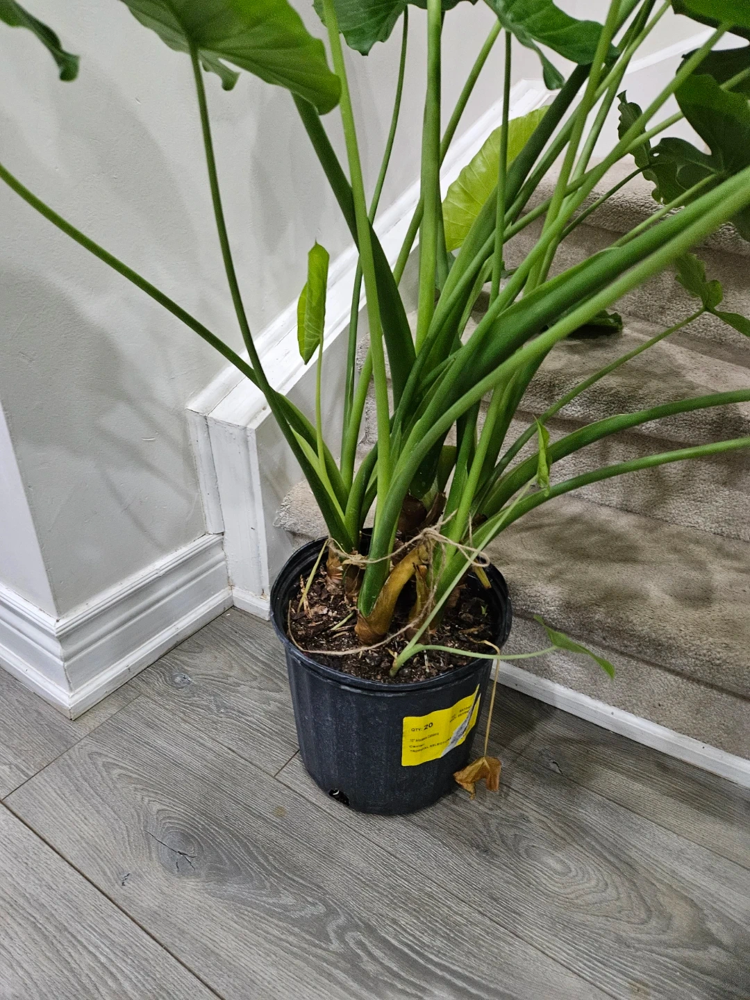 Selling a healthy elephant ear plant, potted in a black container. This plant features large, vibrant green leaves that add a tropical touch to any space. It’s ready to brighten up your home!