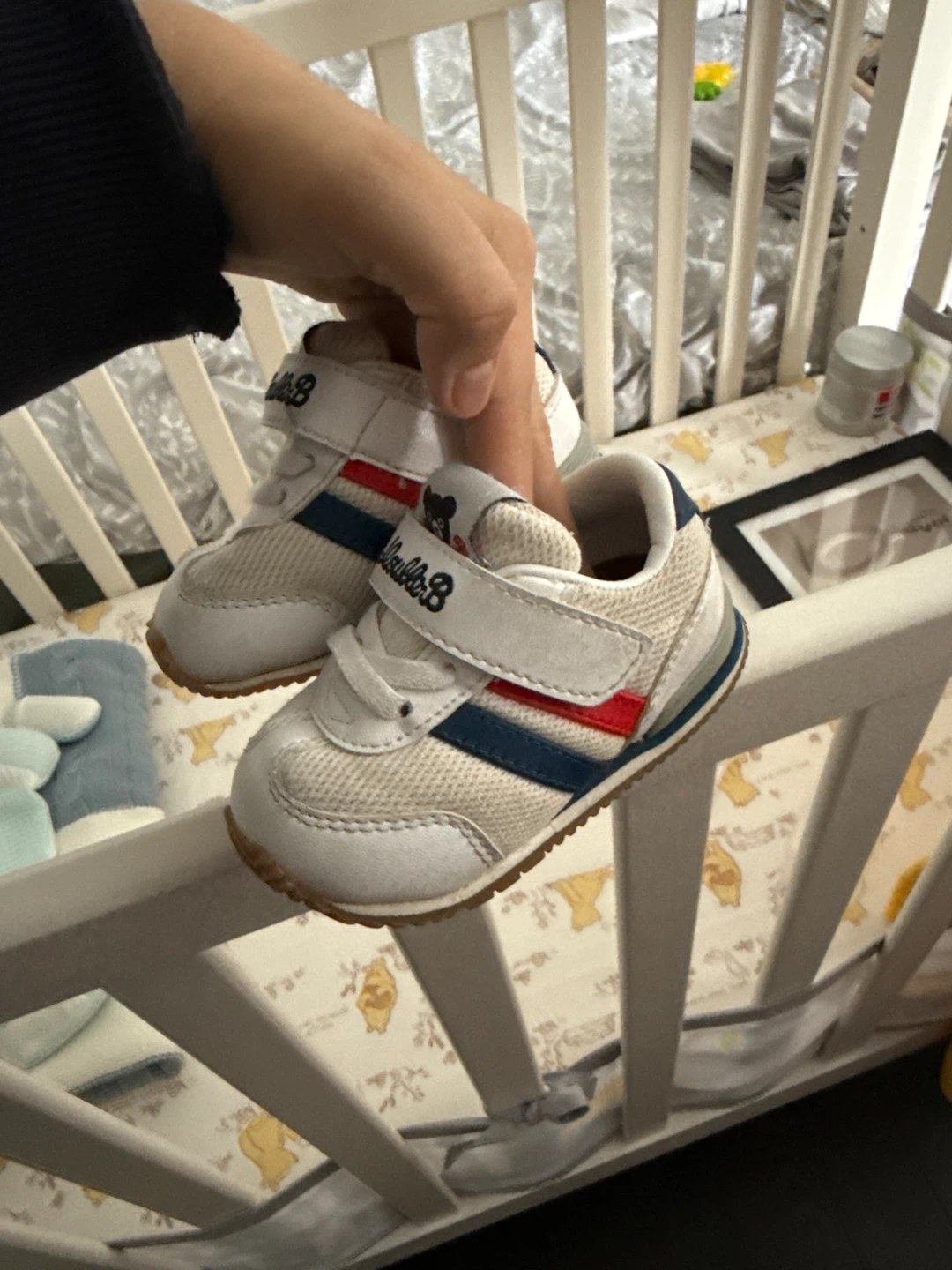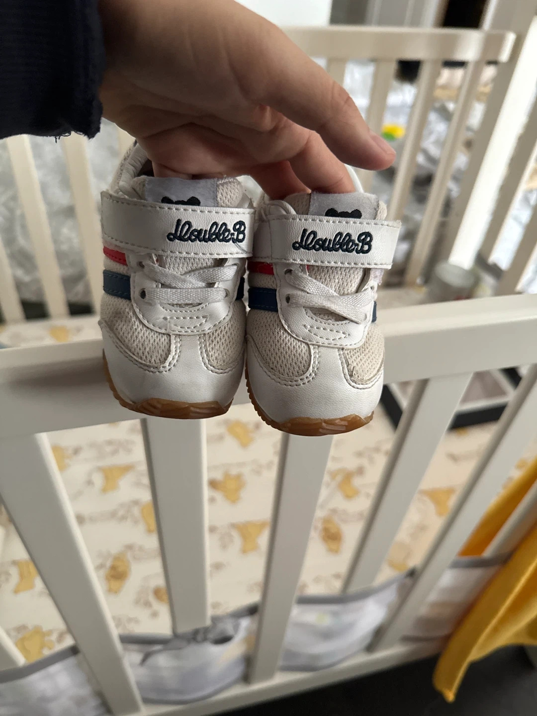 These adorable Double B baby shoes are in great condition and ready for a new little one! They're a size 13cm and feature a classic white design with red and blue accents. Super cute and comfy for your little one! Great for feet development.