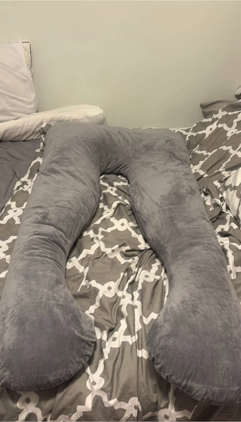 Selling a grey full body pregnancy pillow. It's in great shape and super comfy for expecting mothers or anyone who just wants a cozy pillow to snuggle with. Lightly used. Washed recently.