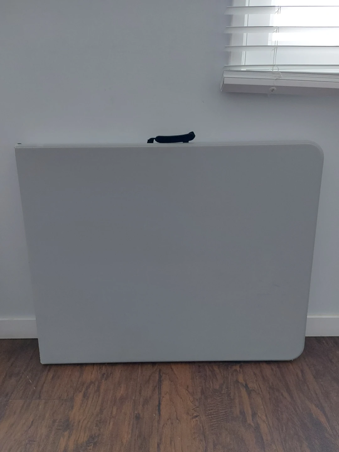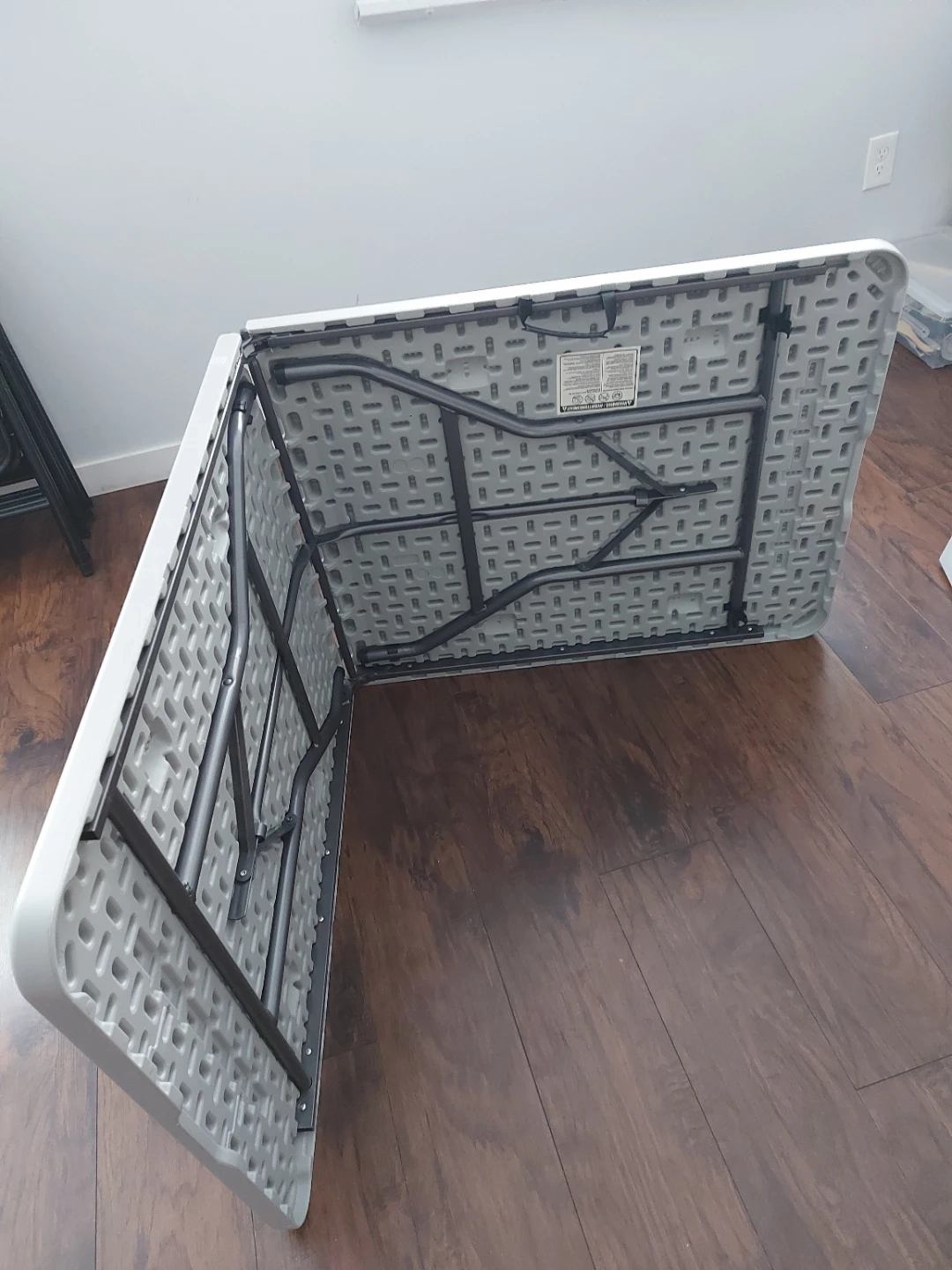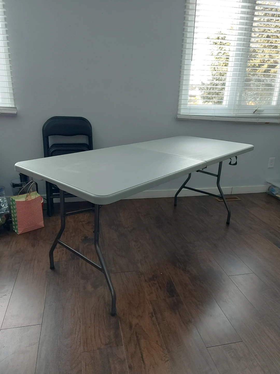 Selling a 6 foot long grey folding table that's super handy for events, gatherings, or just extra space when you need it! It's in great shape and folds up easily for storage.