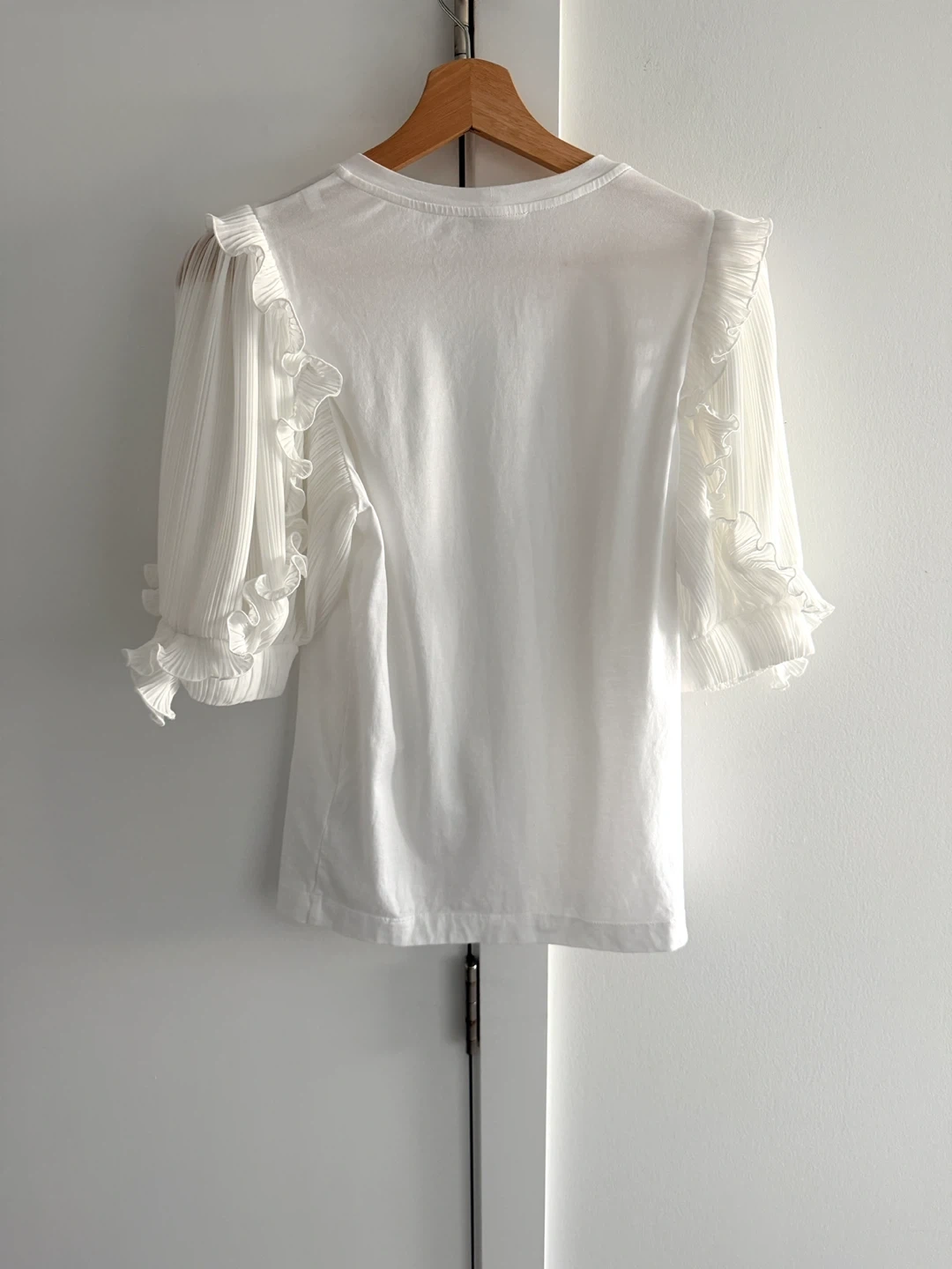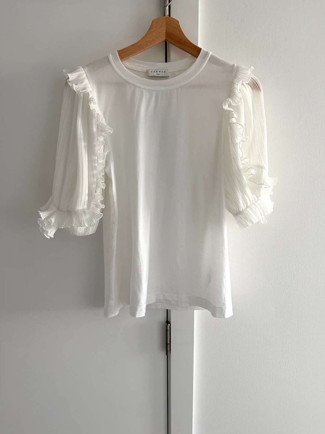 Sandro Paris White Ruffle Sleeve Top S